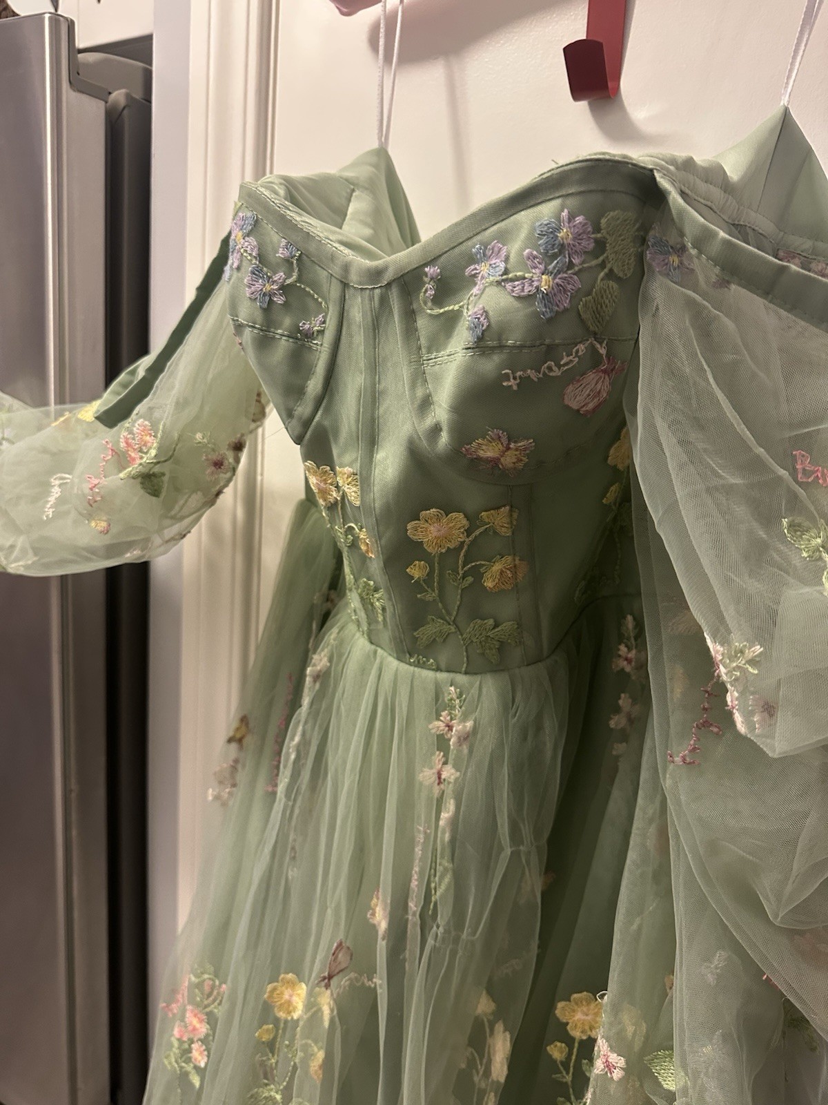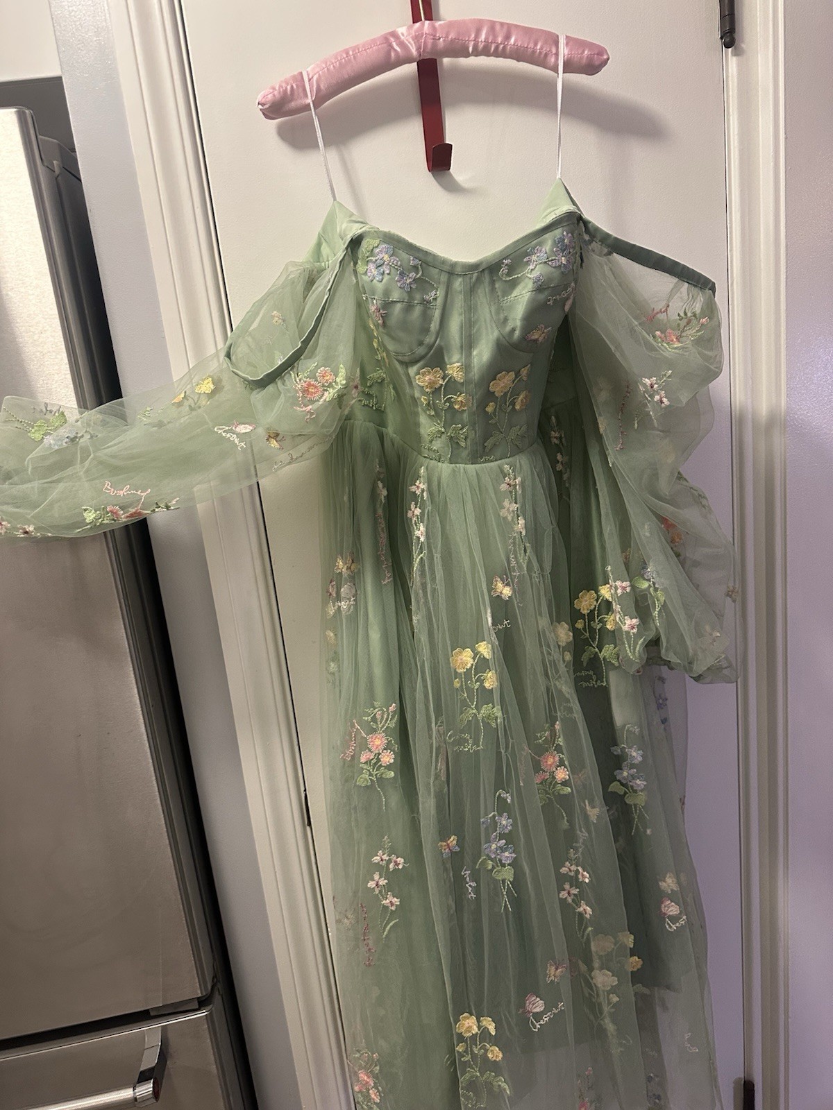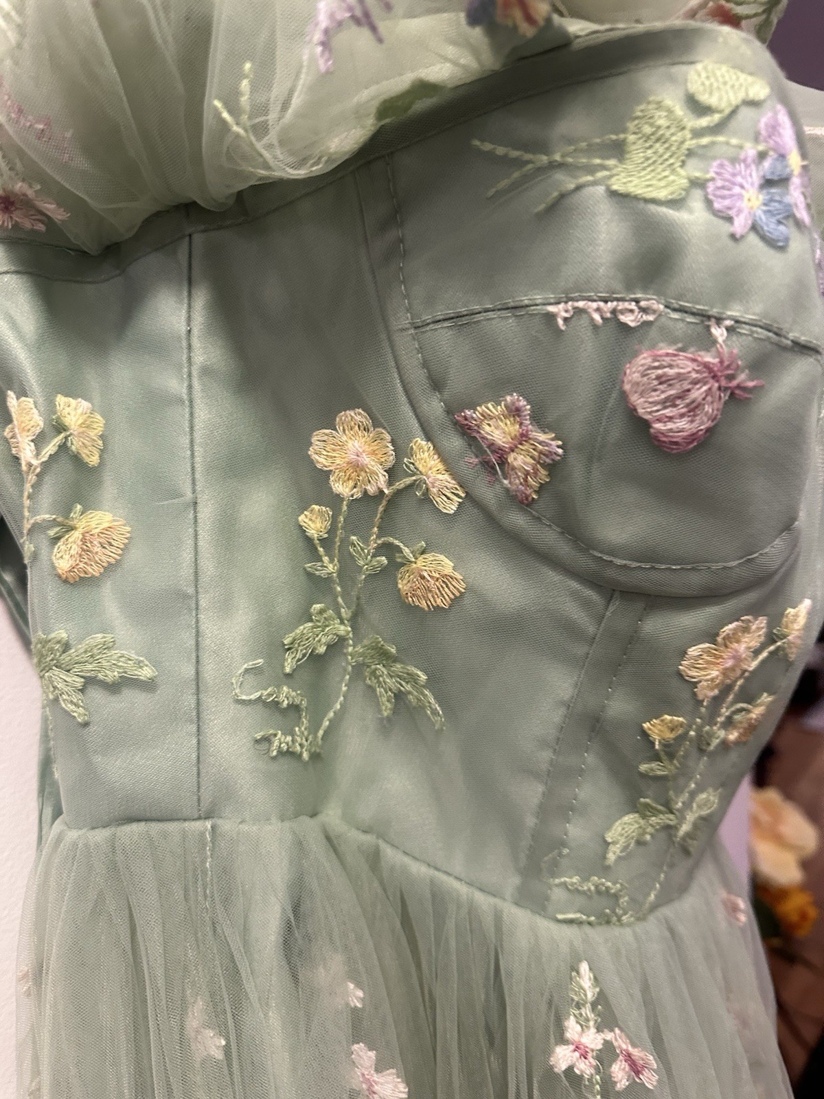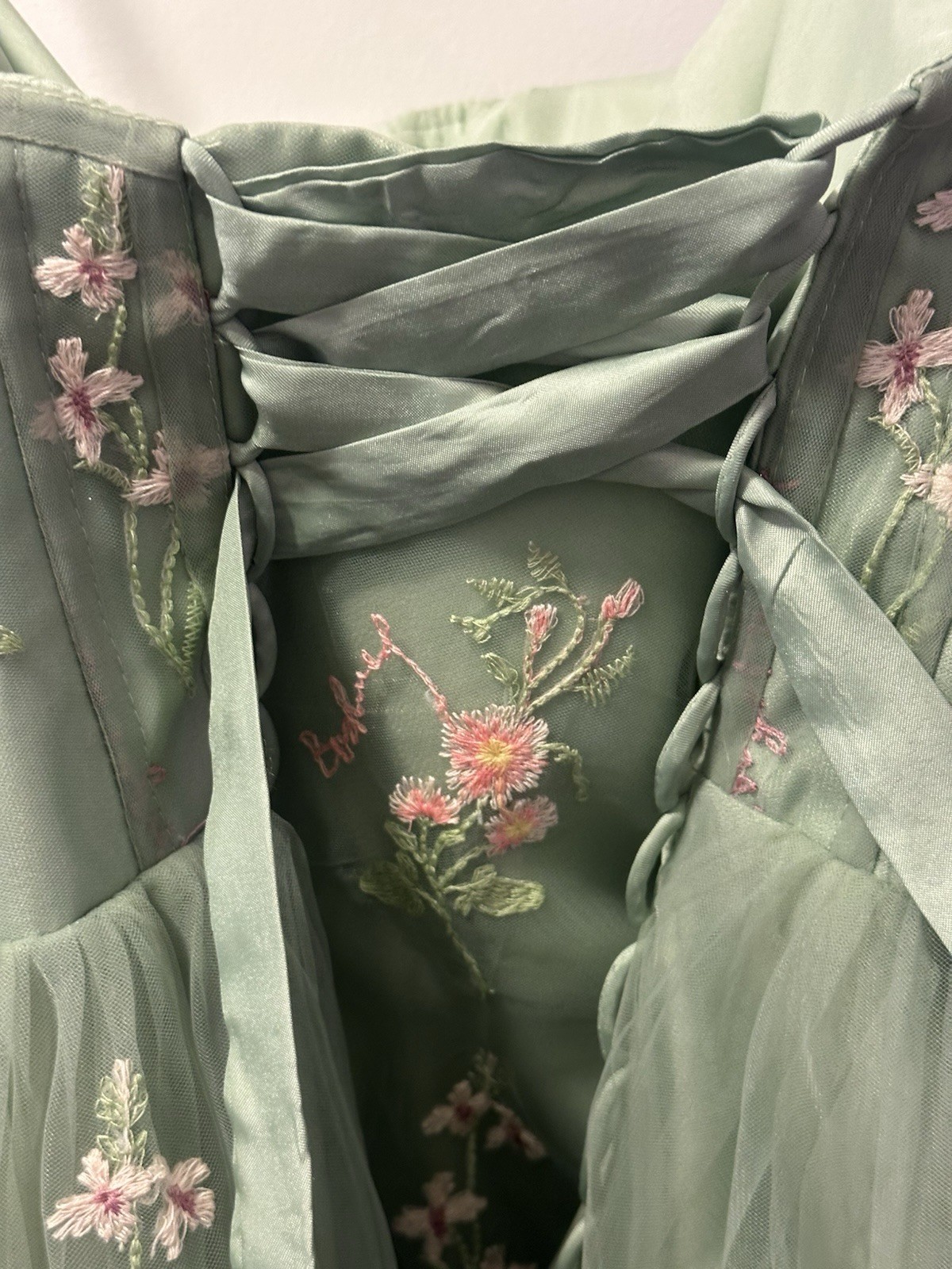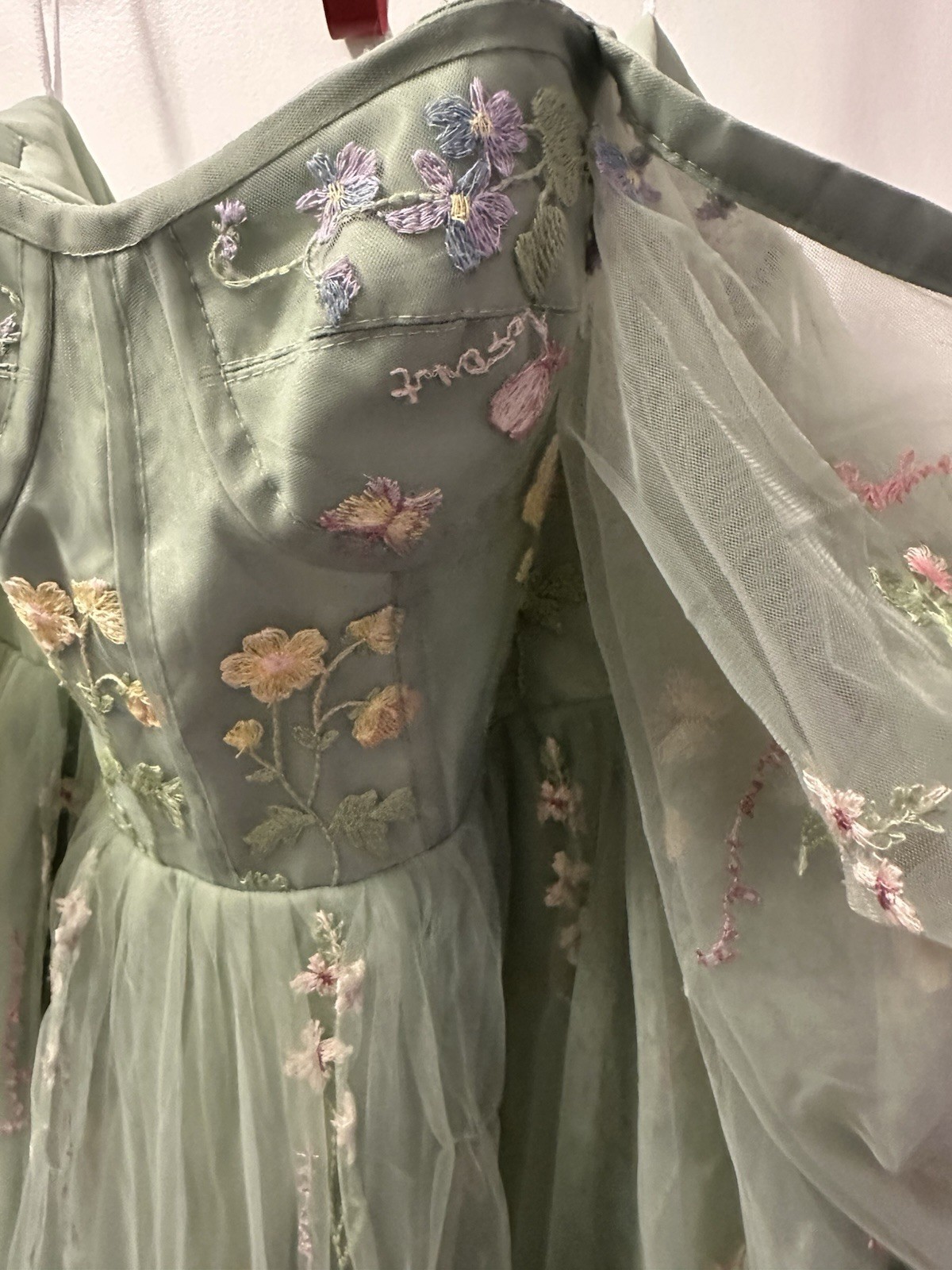 как выглядит Romantic Garden Fairycore Tea Length Dress Magical Embroidered Floral Tulle фото