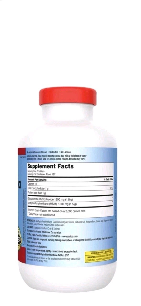 Kirkland Signature Extra Strength Glucosamine HCI 1500mg with MSM 375 Tablets