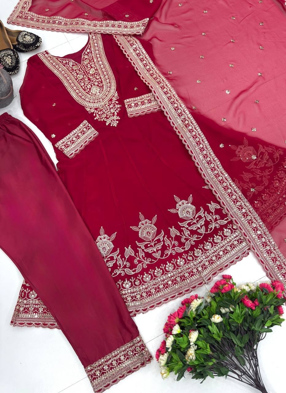 New Launching Red Faux Georgette Salwar Kameez With Dupatta For Women Girls
