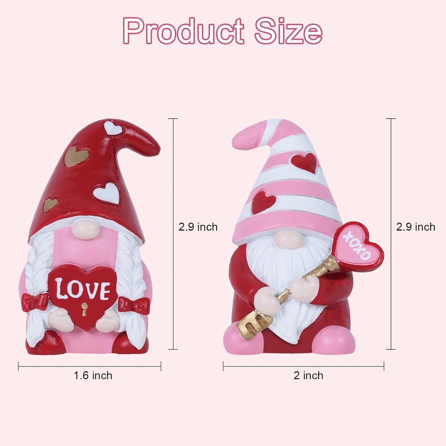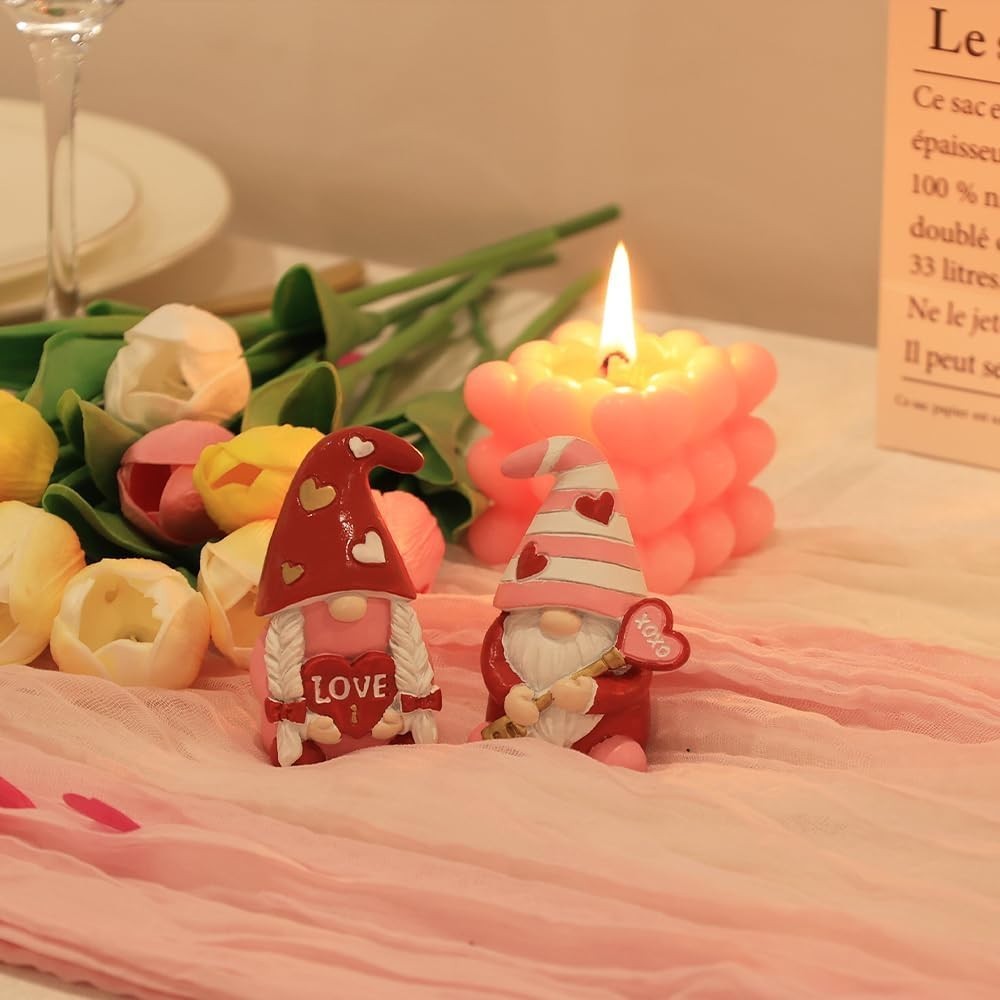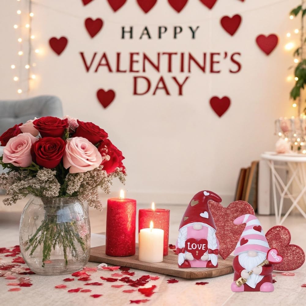 Valentine's Day Decor Resin Gnomes Figurines Love XOXO Sign 2pcs