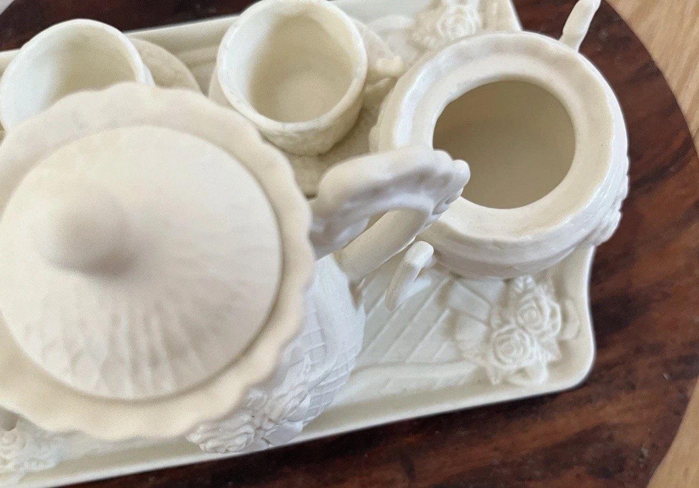 Mini Bisque Porcelain 10 pc Tea Set 1998 Roses Square Tray Vintage