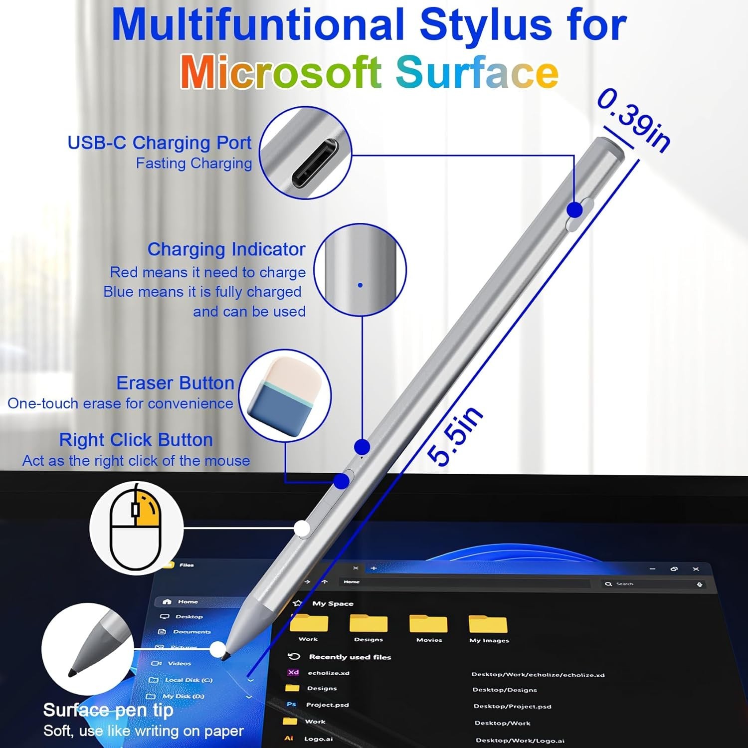 Surface Pen - Surface Pro Pen Stylus for Microsoft Surface Pro 11/9/10/8/X/7/6/5
