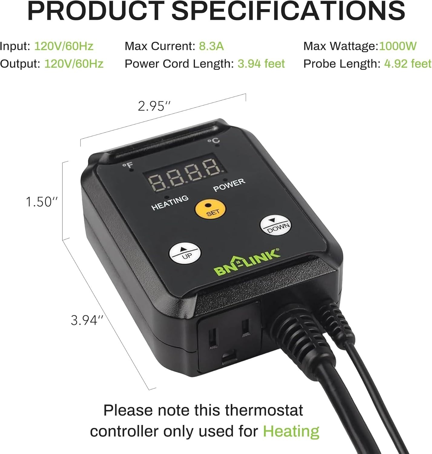 Easy-Use Digital Thermostat for Reptiles and Plants, 40-108 F, Rugged Reliable