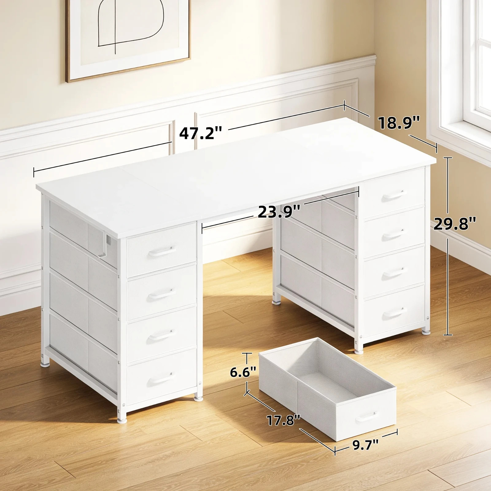 как выглядит White Vanity Desk with 8 Drawers, Modern Makeup Table for Bedroom, Home Office o фото