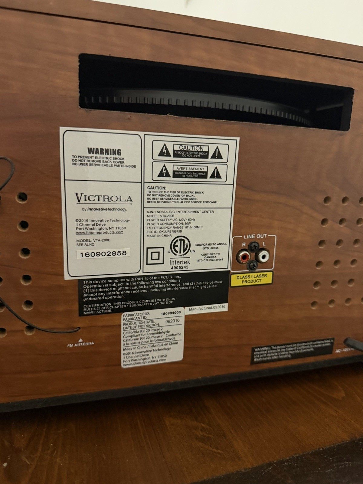 Victrola 6-in-1 Nostalgic Turntable CD Cassette AM/FM Radio VTA-200B