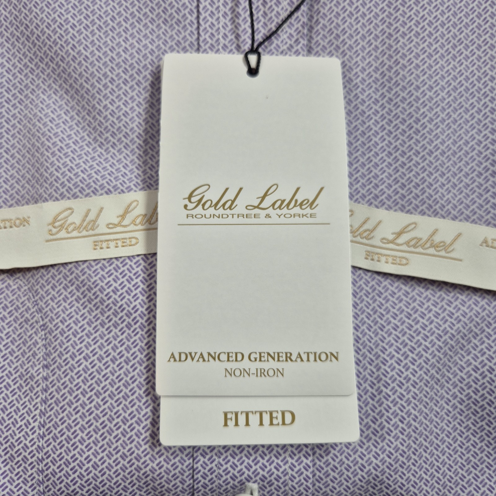 Roundtree Yorke Gold Label Men's Shirt Size 17 35 Purple Fitted Poplin 59
