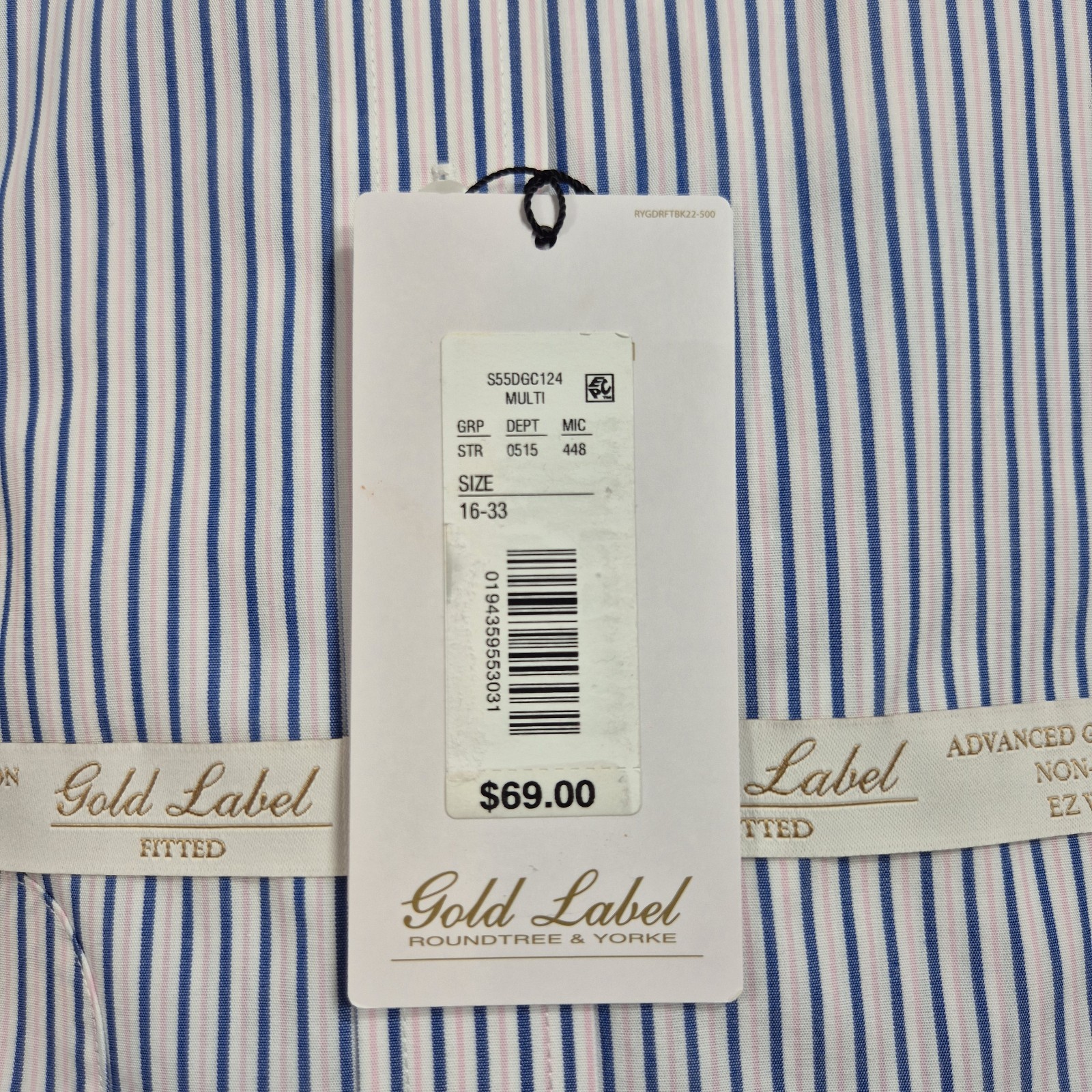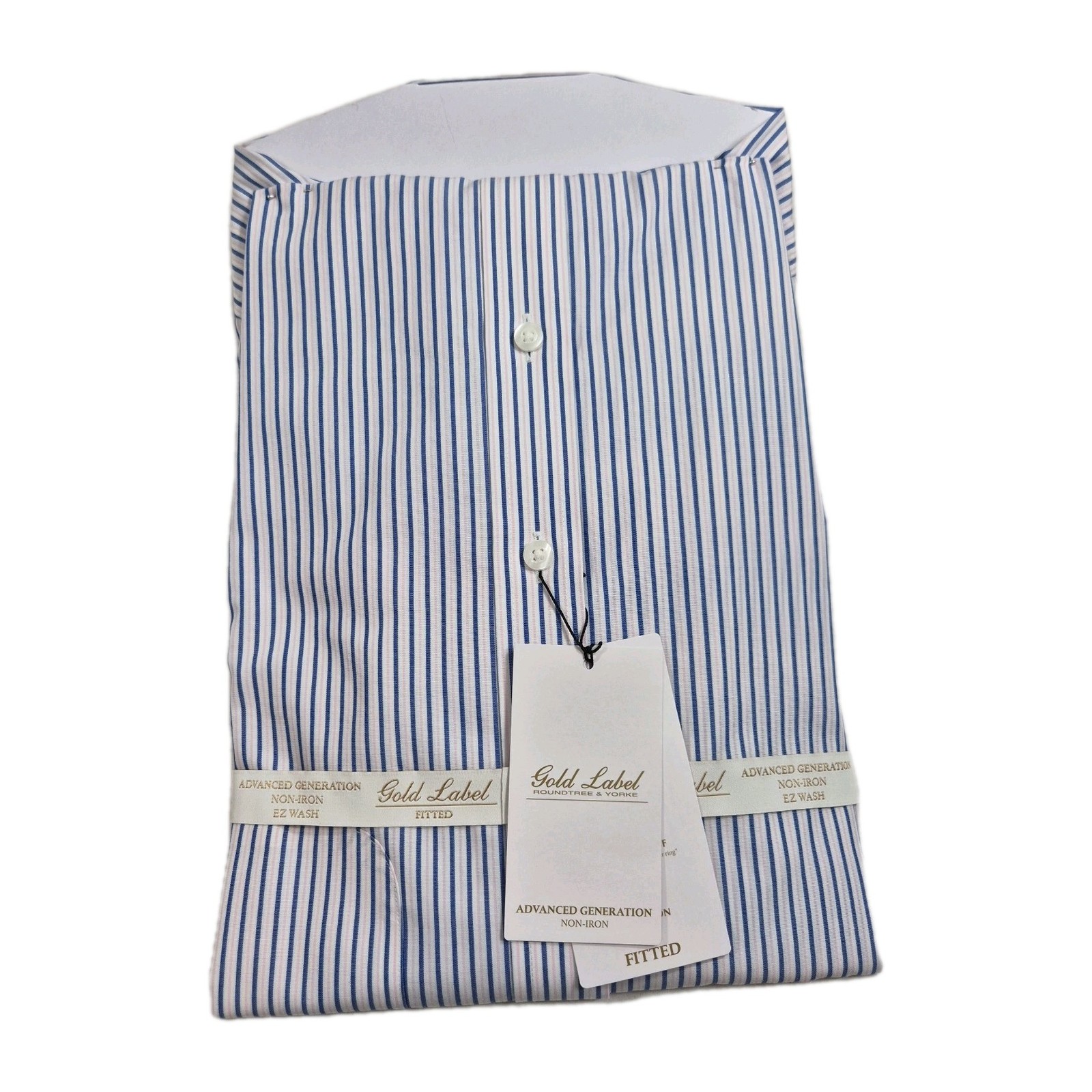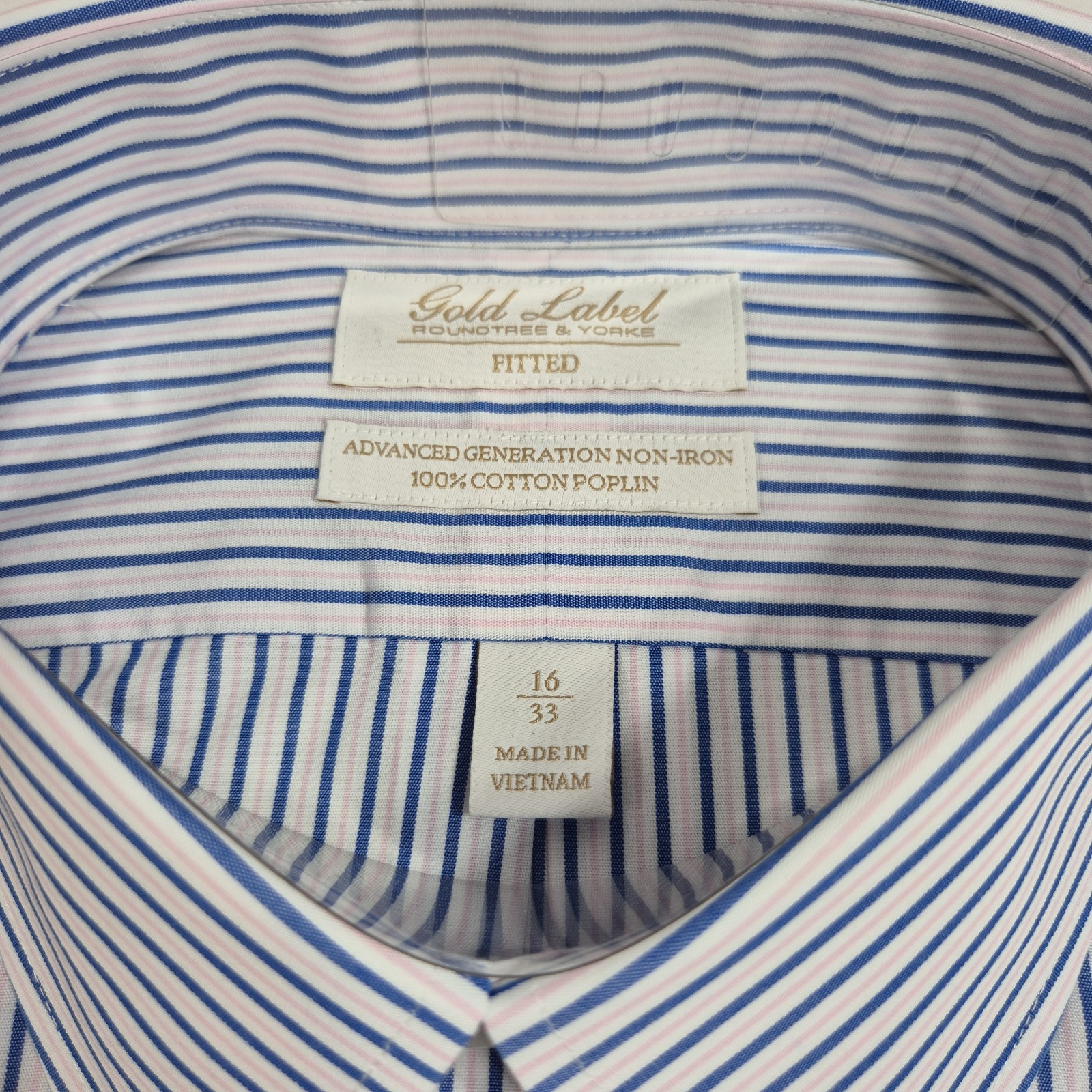 Roundtree Yorke Gold Label Men's Shirt Size 16 33 Blue Pink Striped Poplin 59
