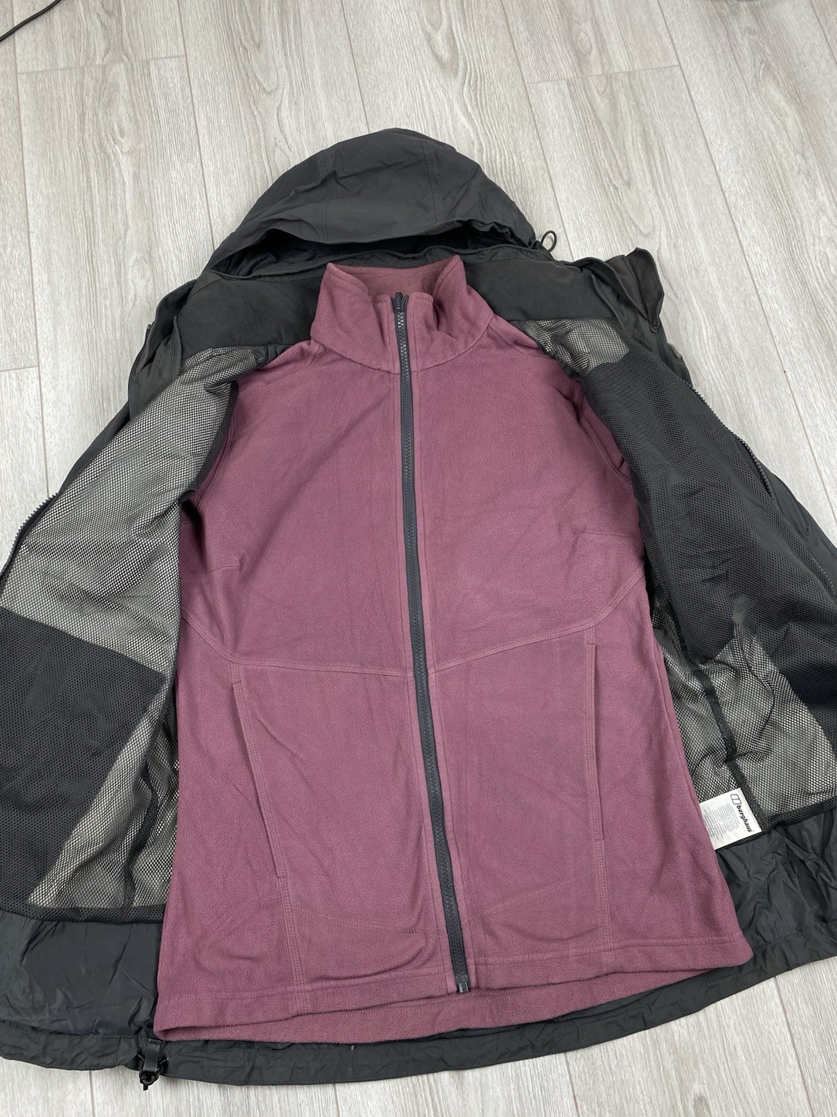 Womens Gray Berghaus Gore-tex Hooded Waterproof Jacket/fleece - Size UK 14, L