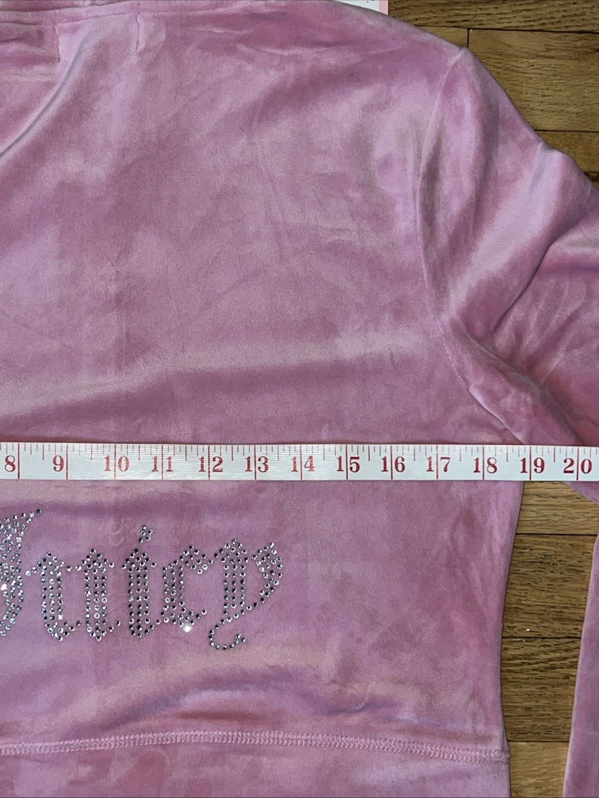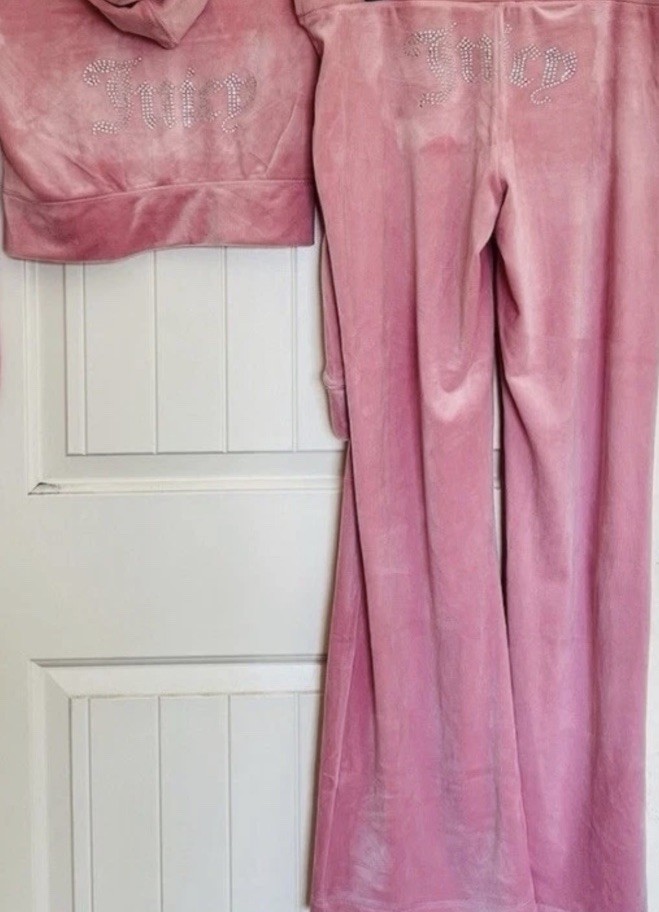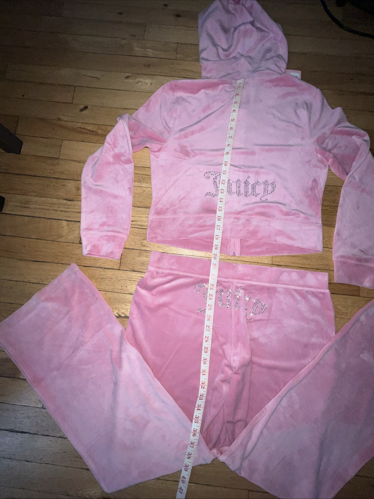 как выглядит 199 NWT JUICY COUTURE Velour Bling Tracksuit Hoodie Pant Rose Pink Sz LARGE фото