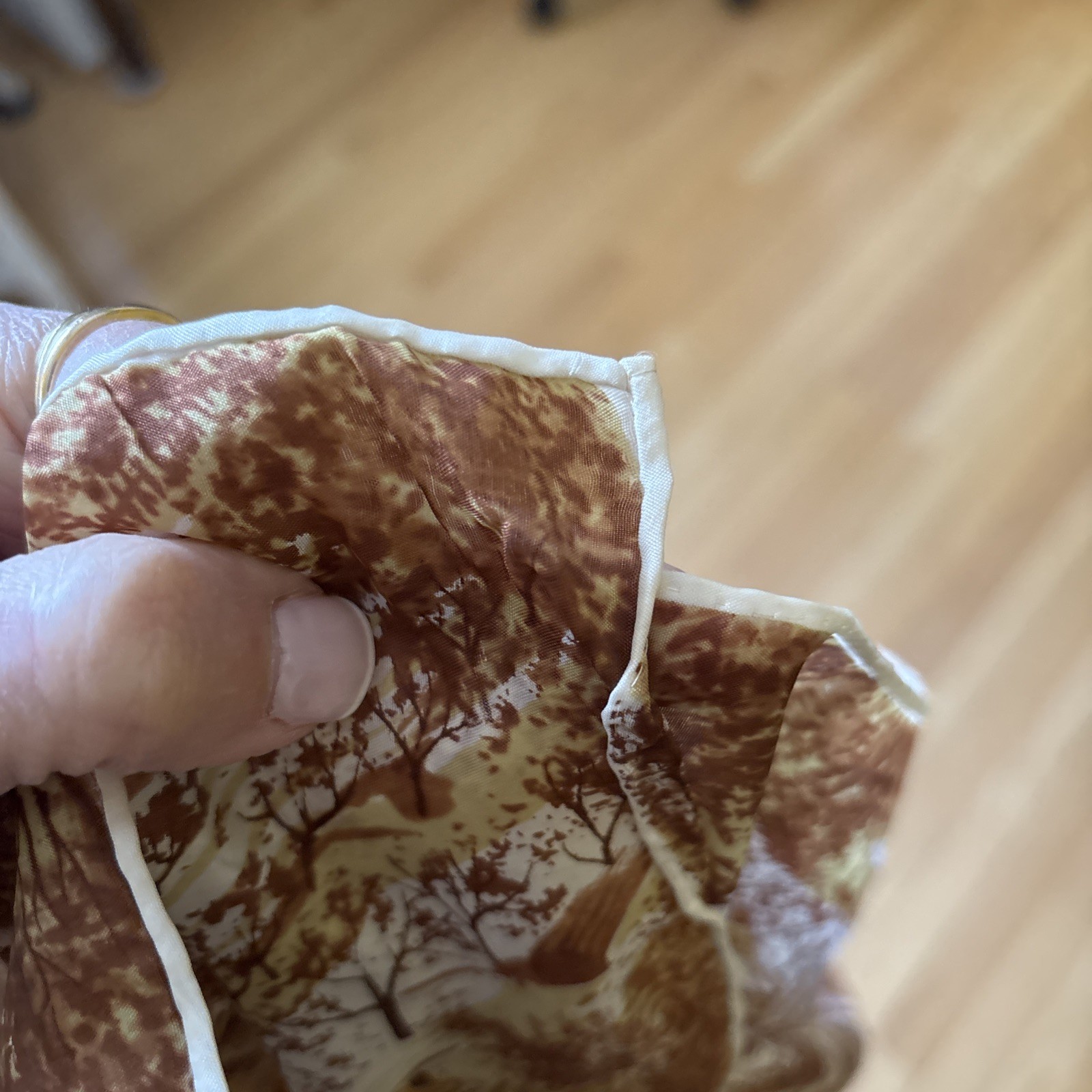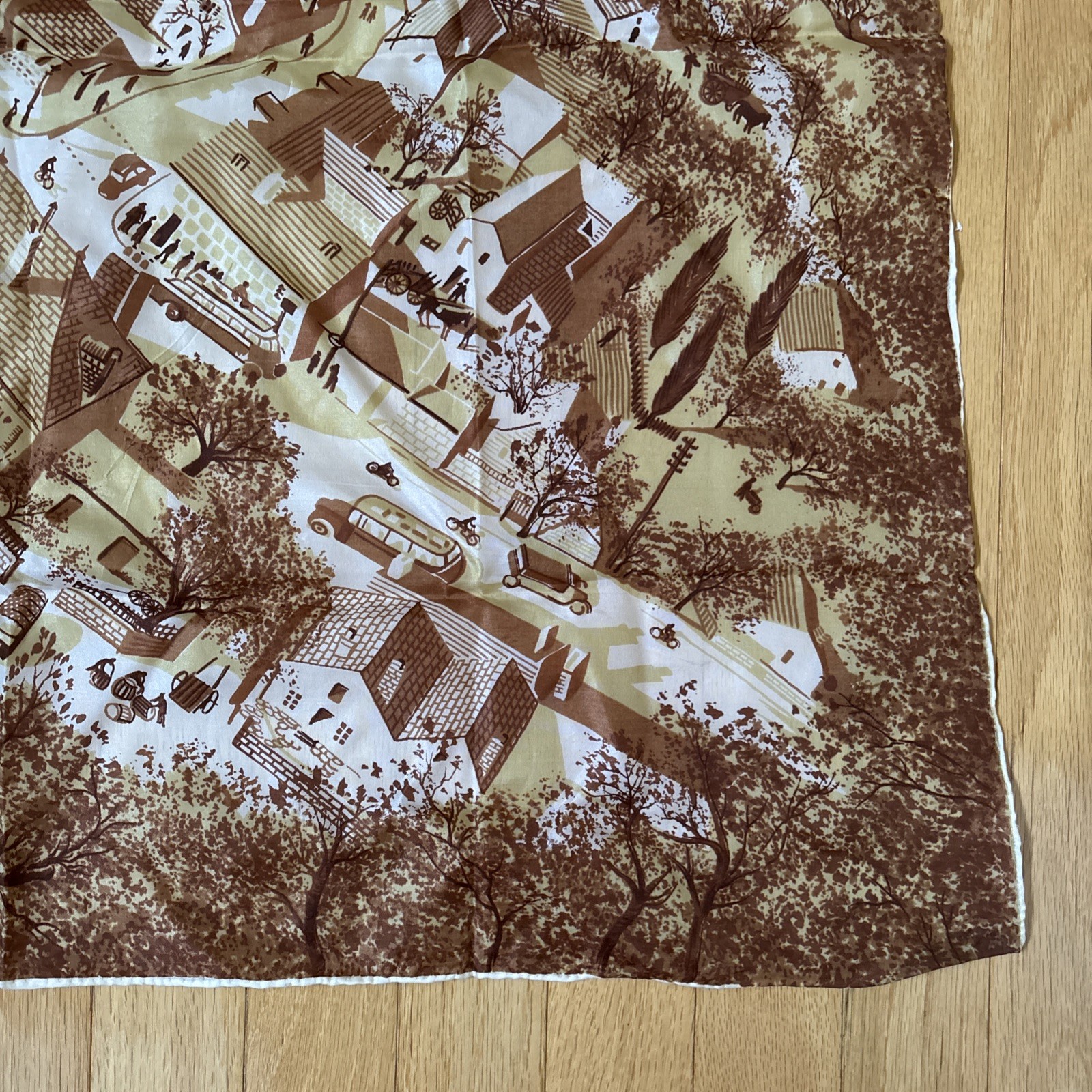 как выглядит Vintage Rayon Silk Hand-Rolled Scarf  Made in Japan  Brown Goldish Cream фото