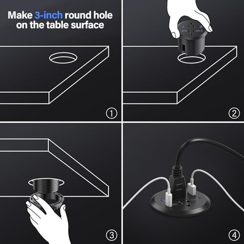 Desktop Power Grommet with 65W USB-C Fast Charging, 2 Outlets 4 USB Ports