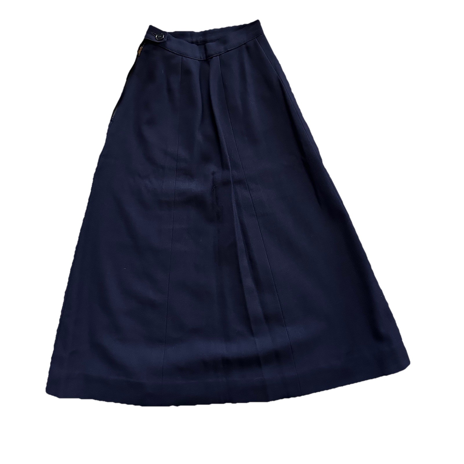как выглядит Vintage 1960s Navy Wool A-Line Midi Skirt 20 Waist XXS Ultra Petite фото