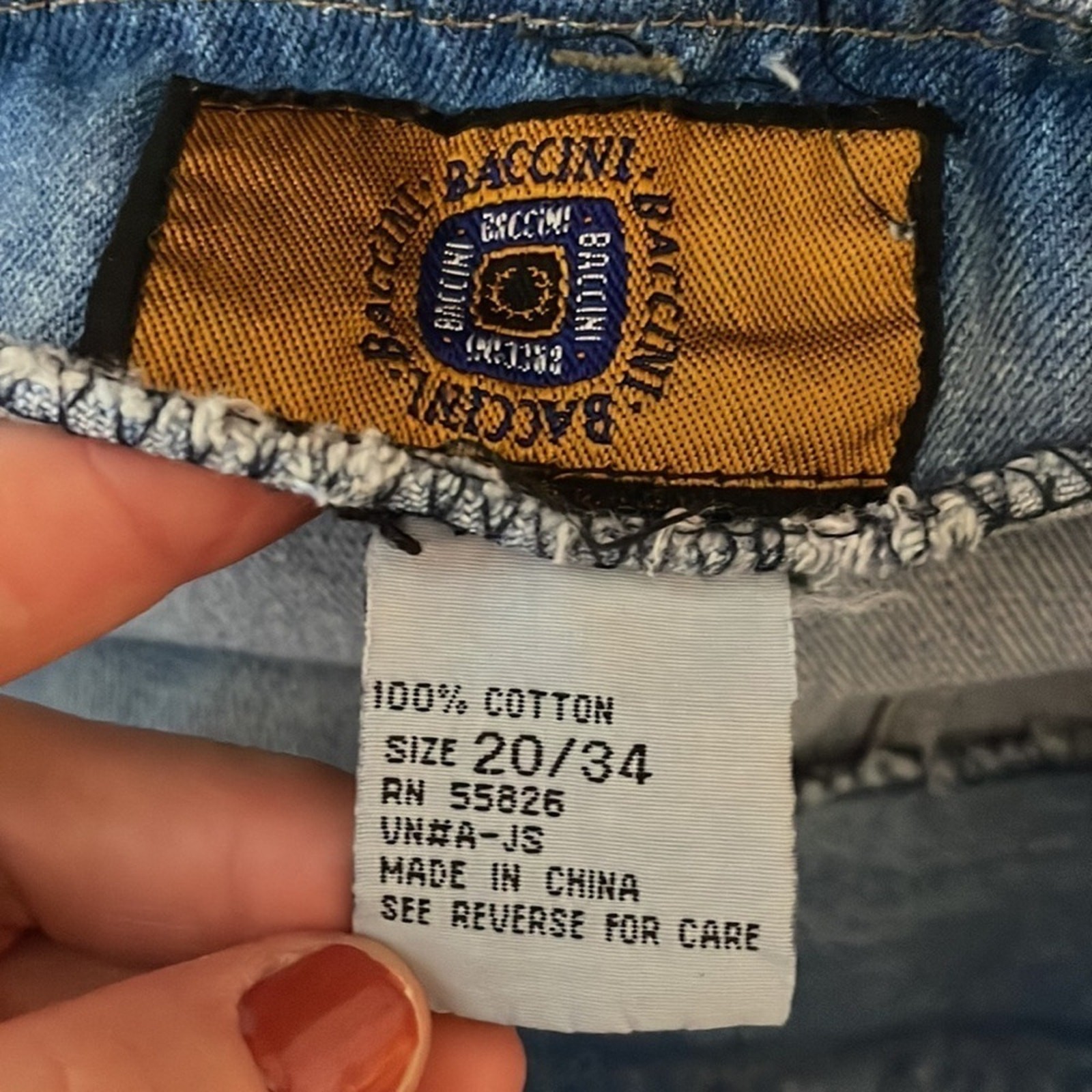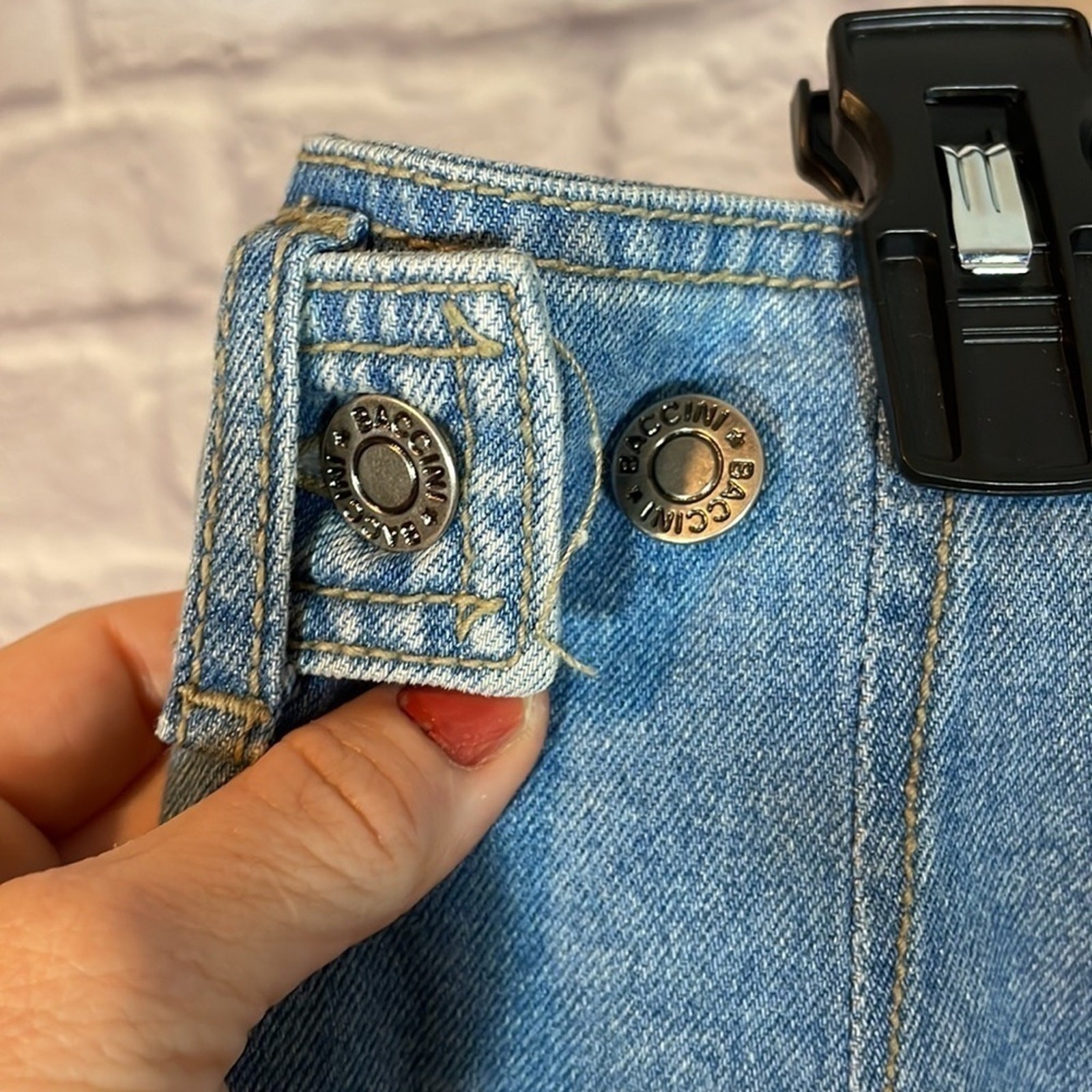 как выглядит Vintage Baccini denim blanket stitch wrap skirt фото