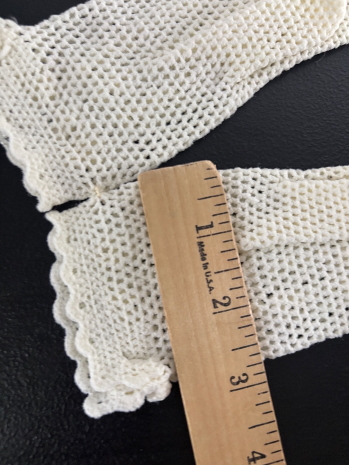 как выглядит NOS VTG 60S WHITE CROCHET LACE SCALLOPED TRIM POLY/NYLON KNIT WRIST GLOVES XS/S фото