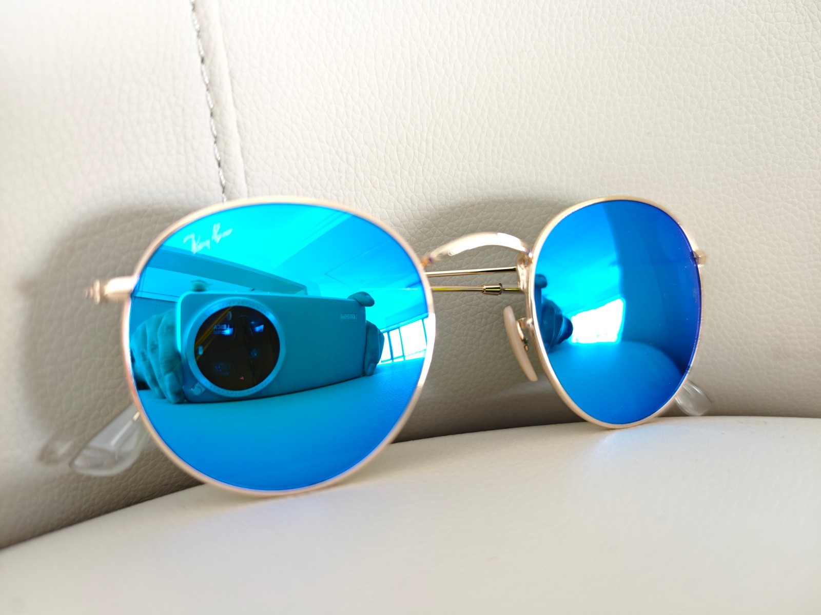 как выглядит RAY-BAN RB3447 Sunglasses Gold Frame Blue Lens фото