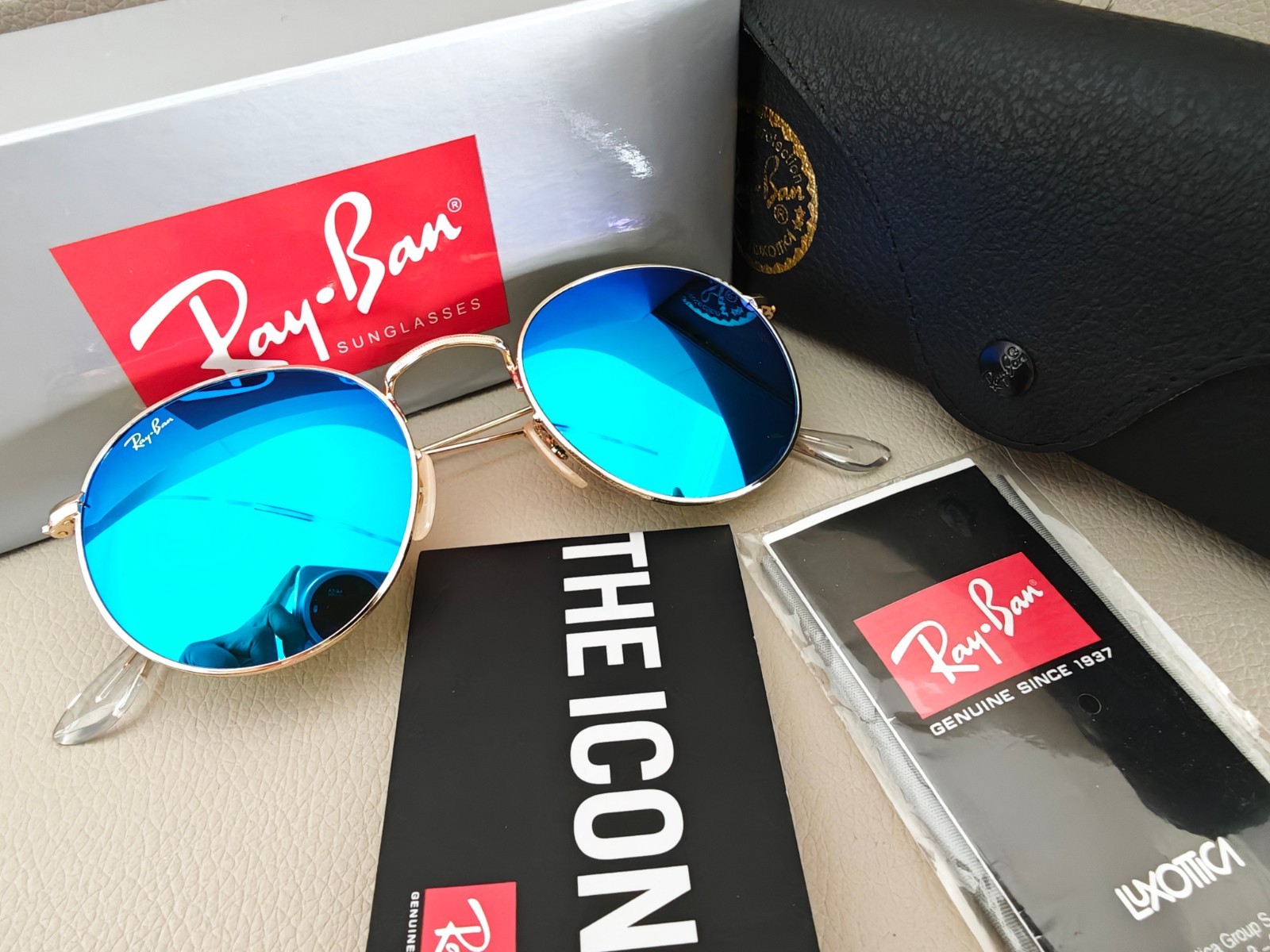 RAY-BAN RB3447 Sunglasses Gold Frame Blue Lens