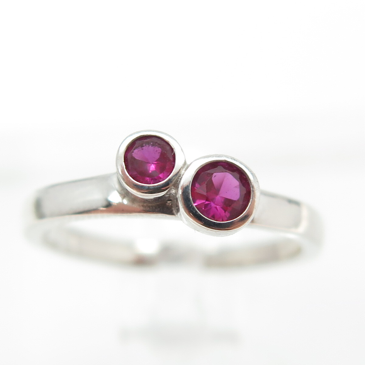 925 Sterling Silver Round-Cut Lab-Created Pink Sapphire Ring Size 7
