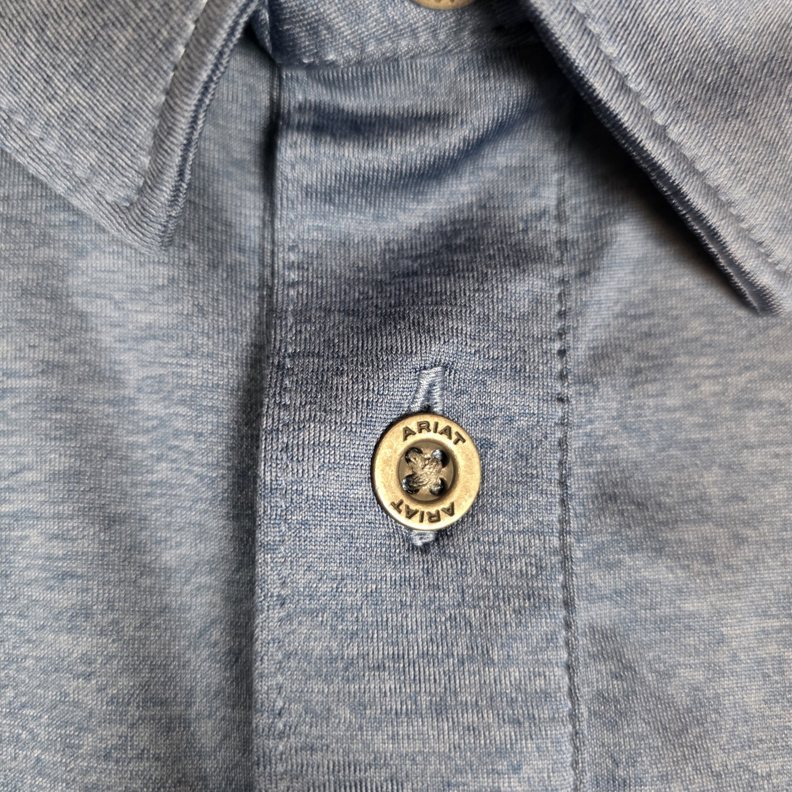 Ariat Tek Charger 2.0 Polo Shirt Mens M Blue Fitted Short Sleeve Performance