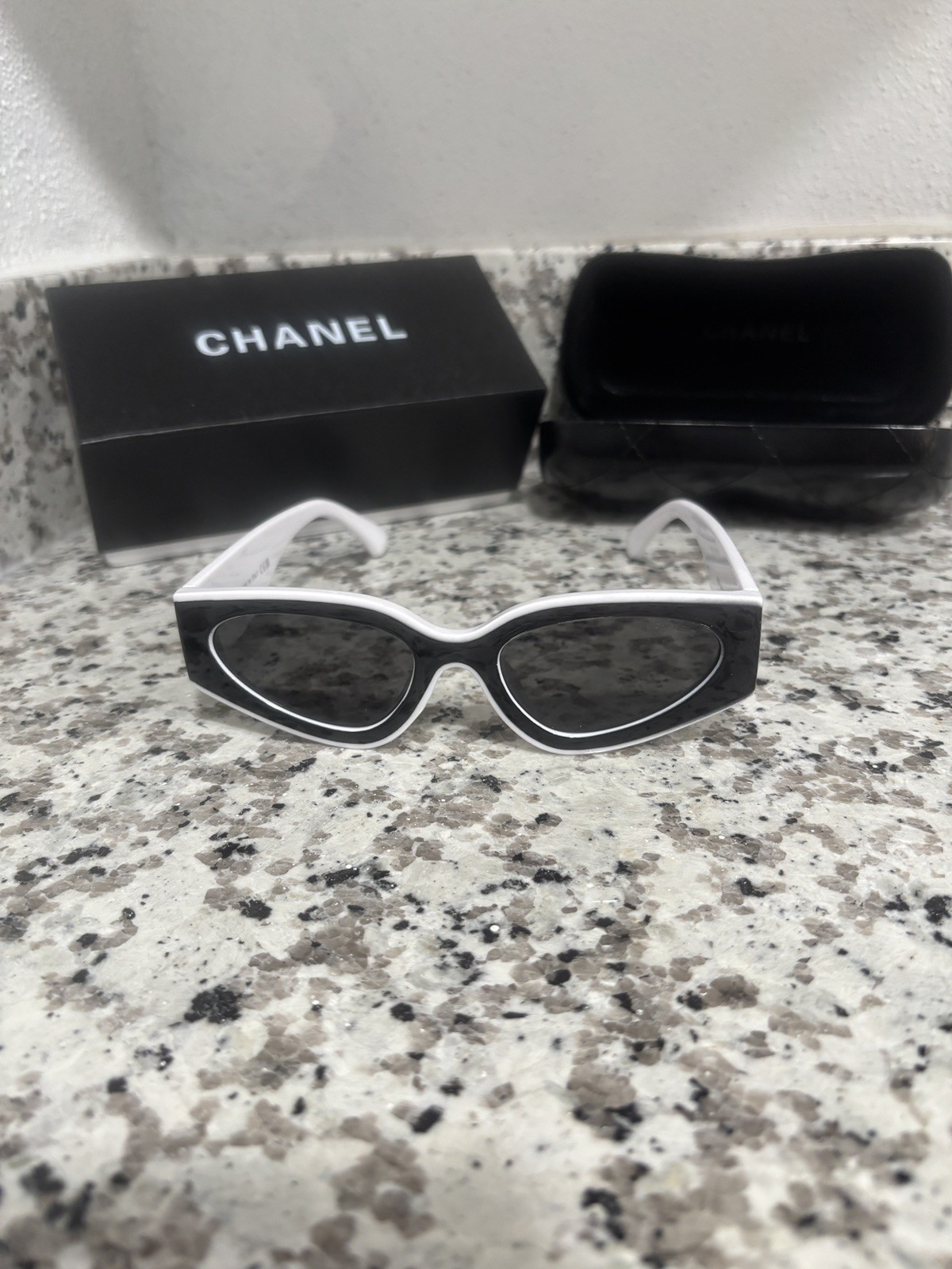 CHANEL Cat Eye Sunglasses Black/White-Authentic-Case Box Included-Ready to Ship