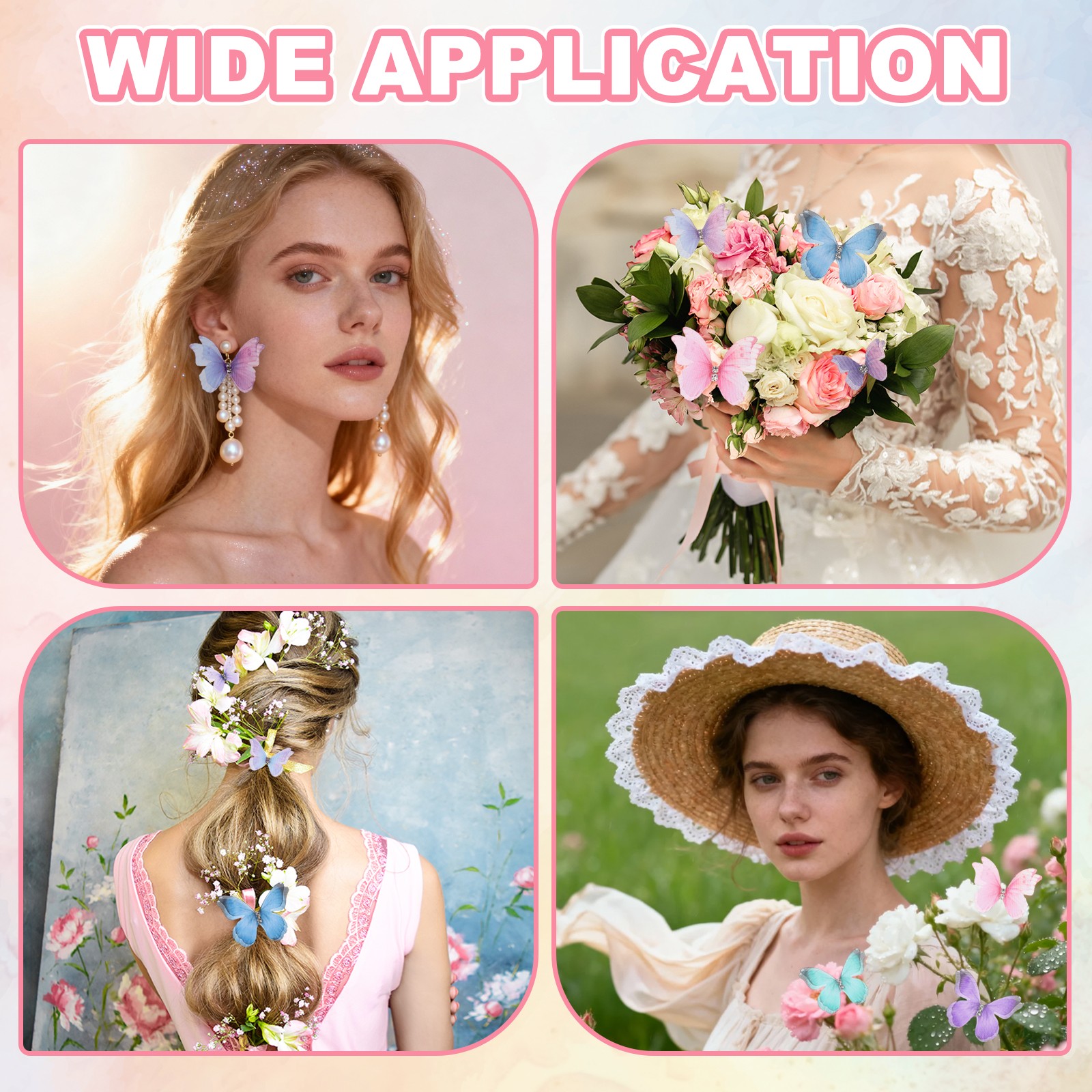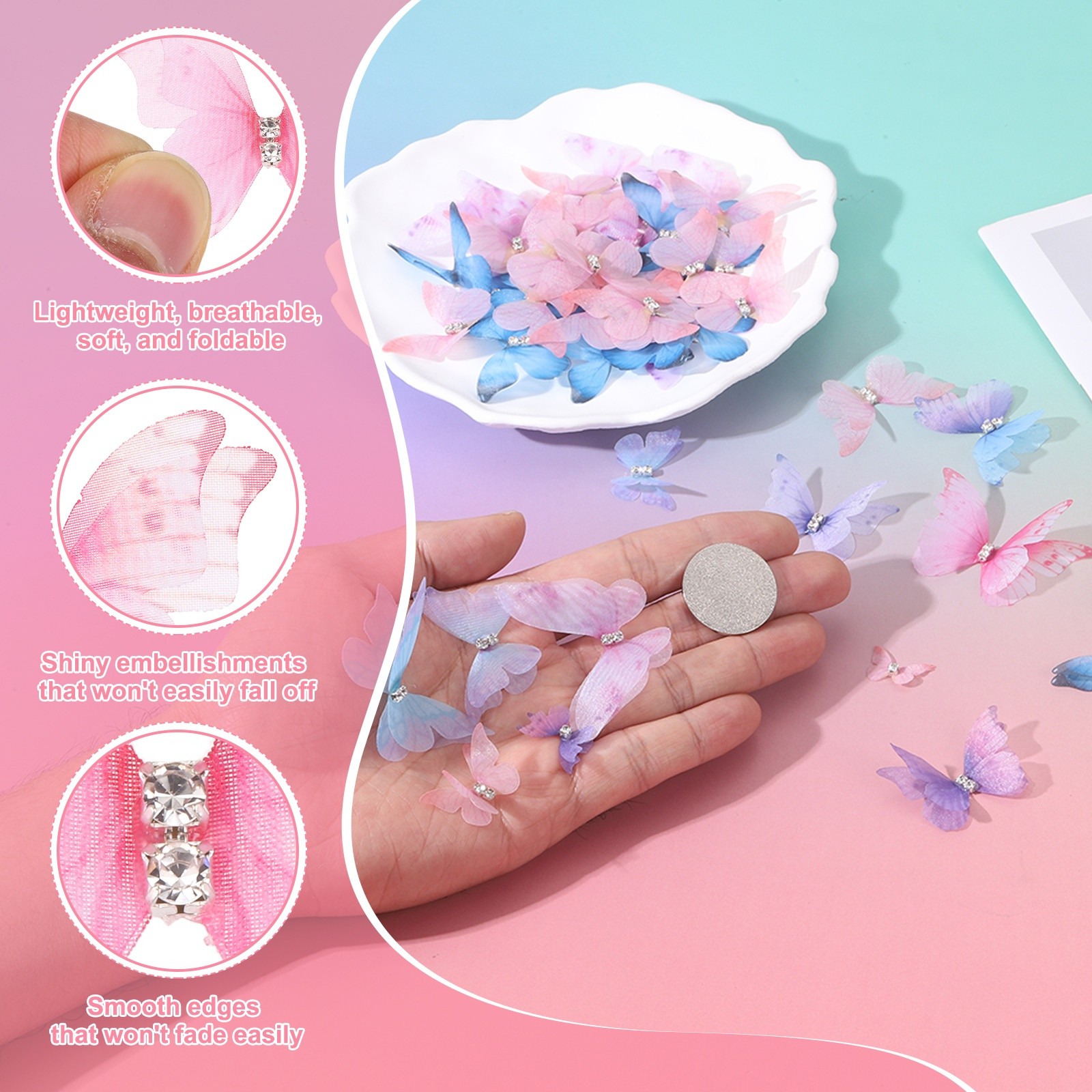 как выглядит 25Pcs Organza Fabric Butterflies,50mm 3D Sheer Mesh Butterfly, Deep Pink фото
