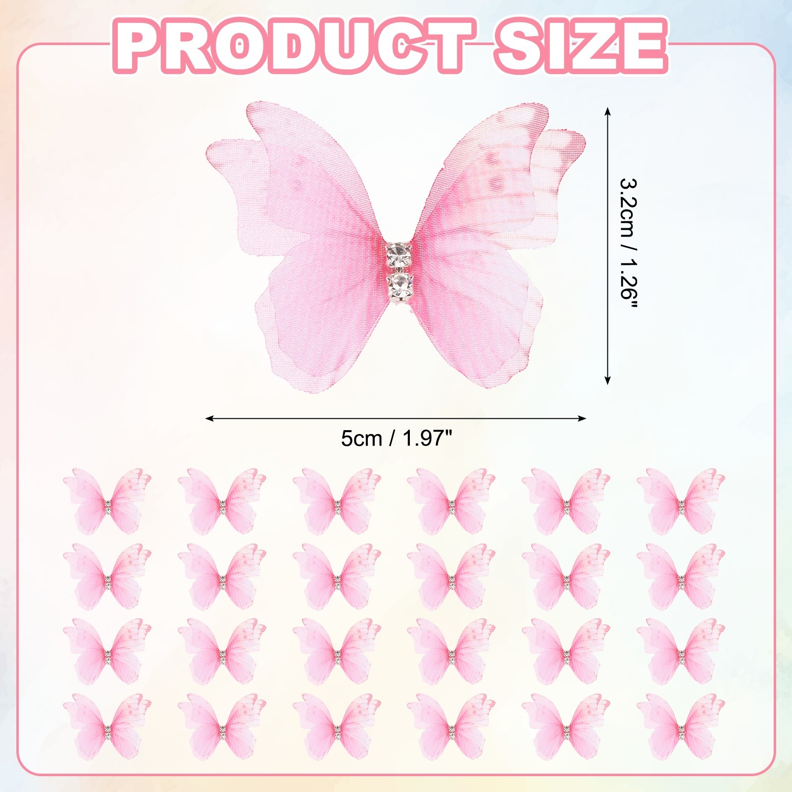 25Pcs Organza Fabric Butterflies,50mm 3D Sheer Mesh Butterfly, Deep Pink