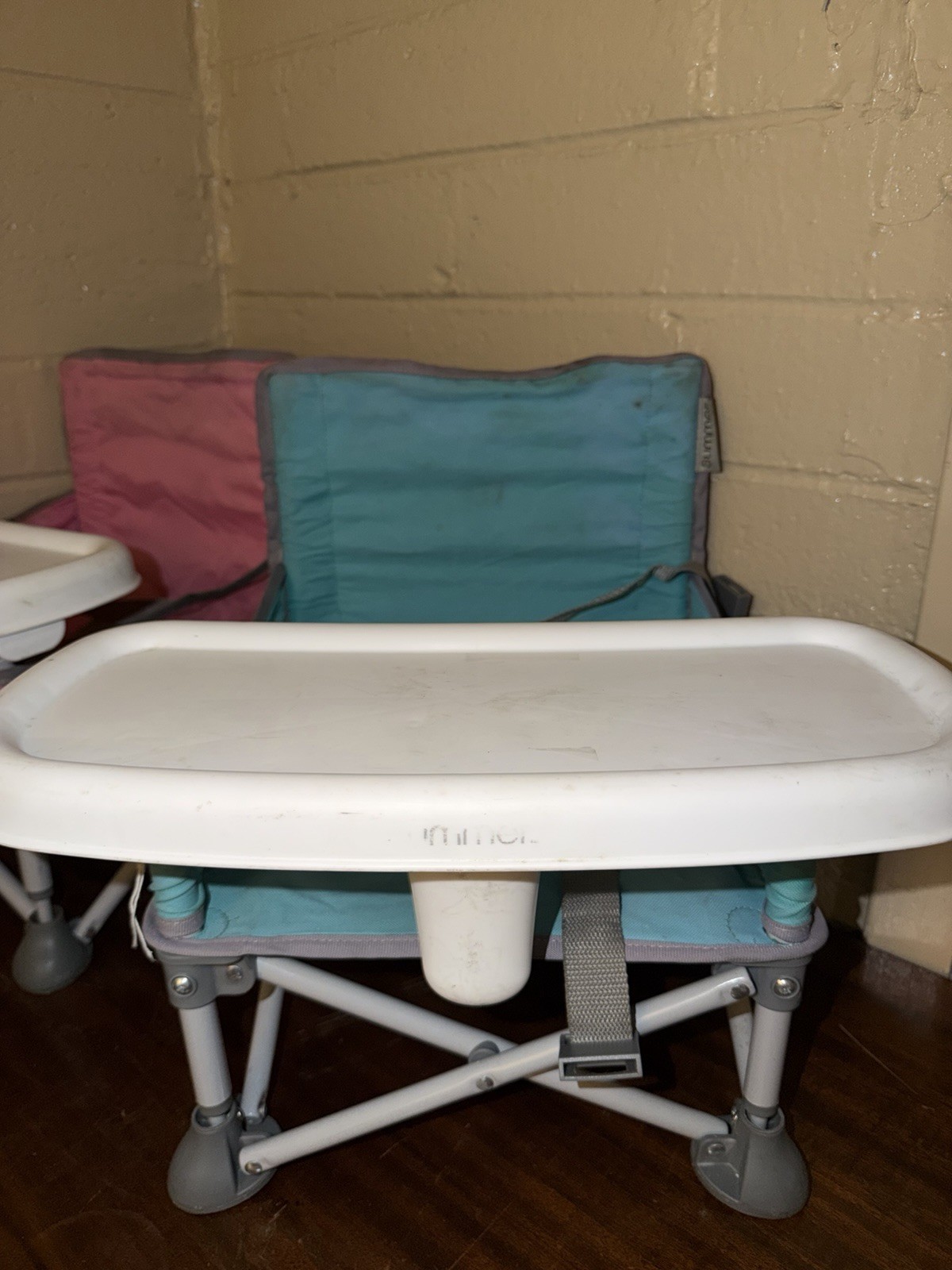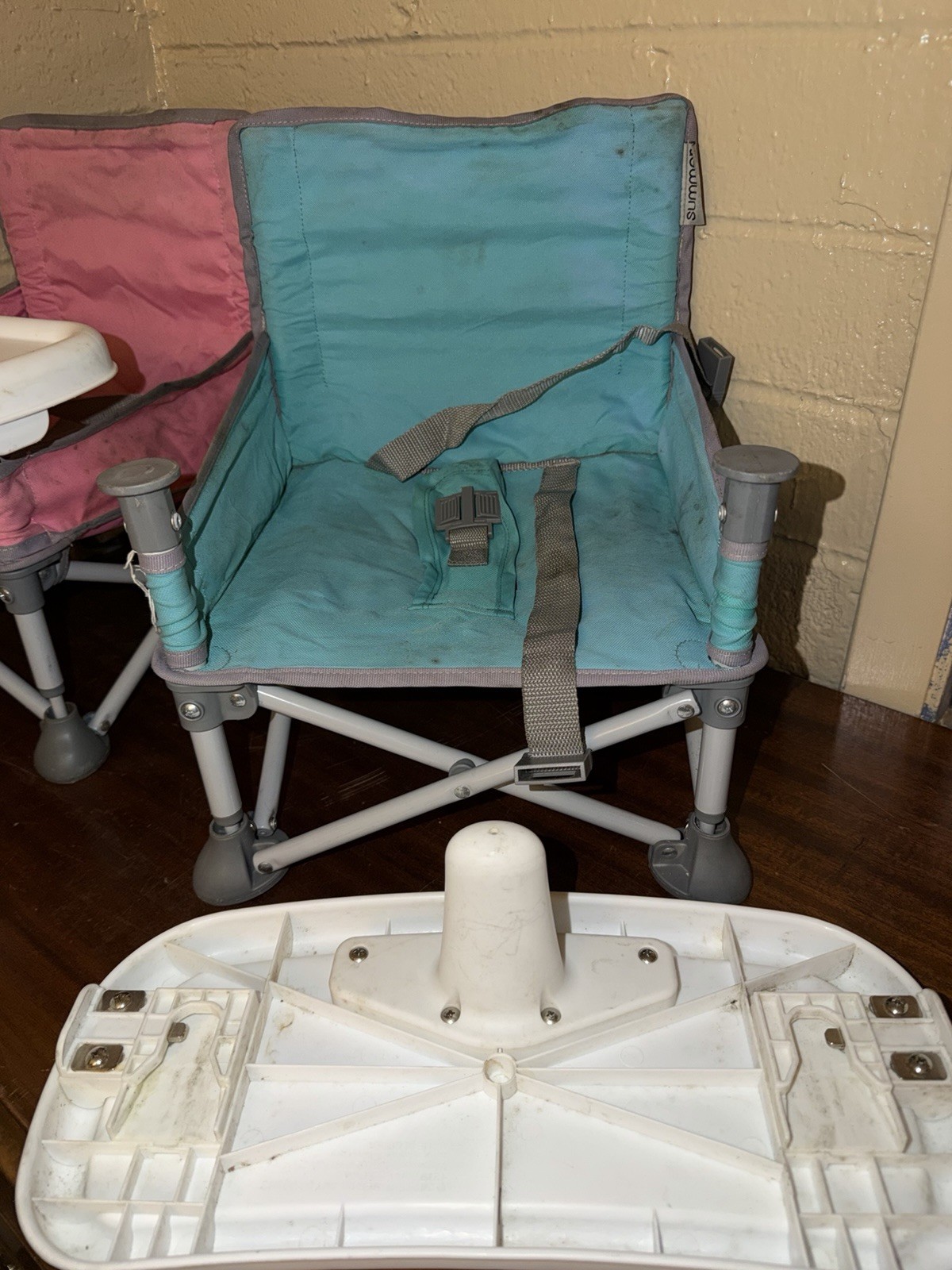 как выглядит Summer Pop N Sit Booster Chairs Blue Pink Set Portable Removable Tray фото