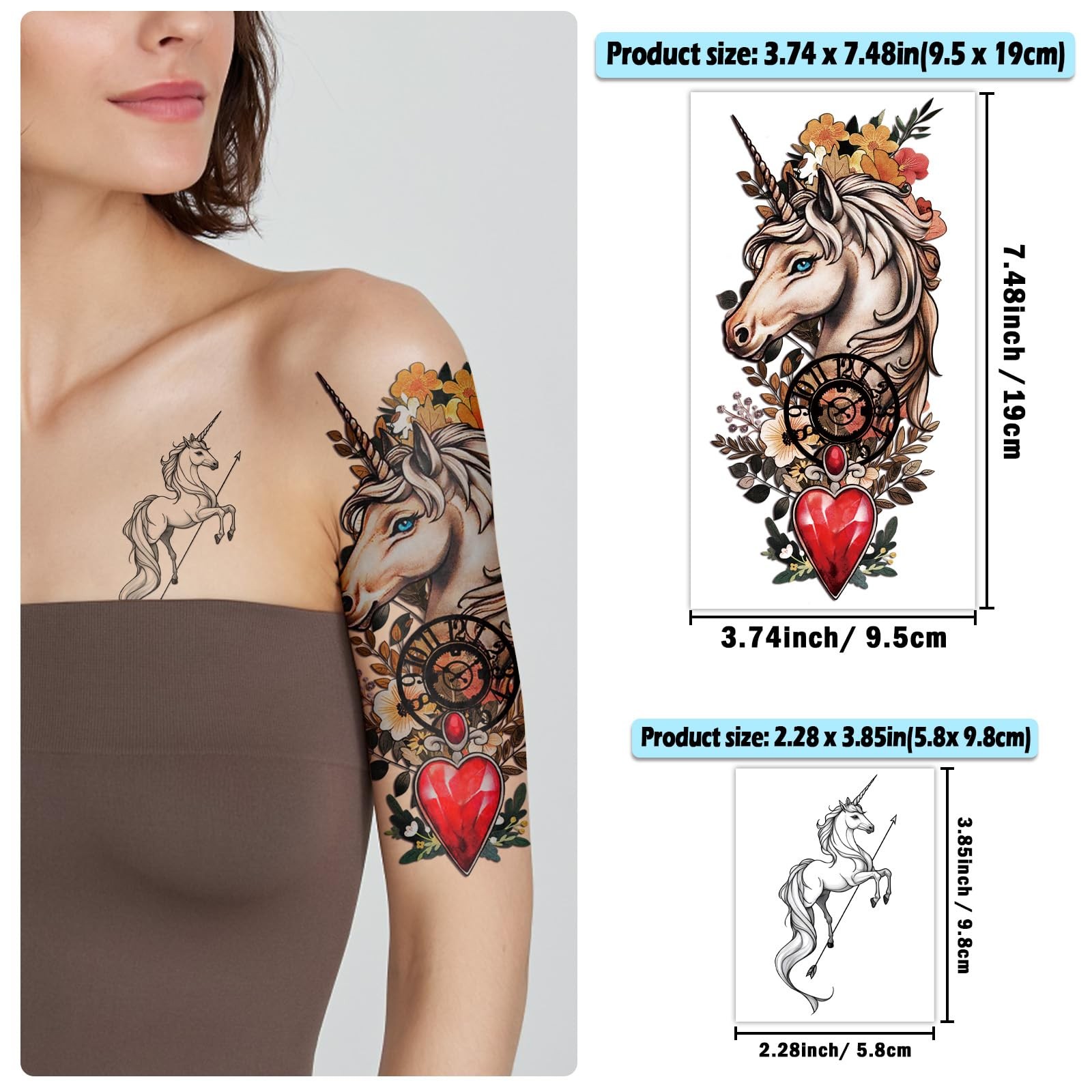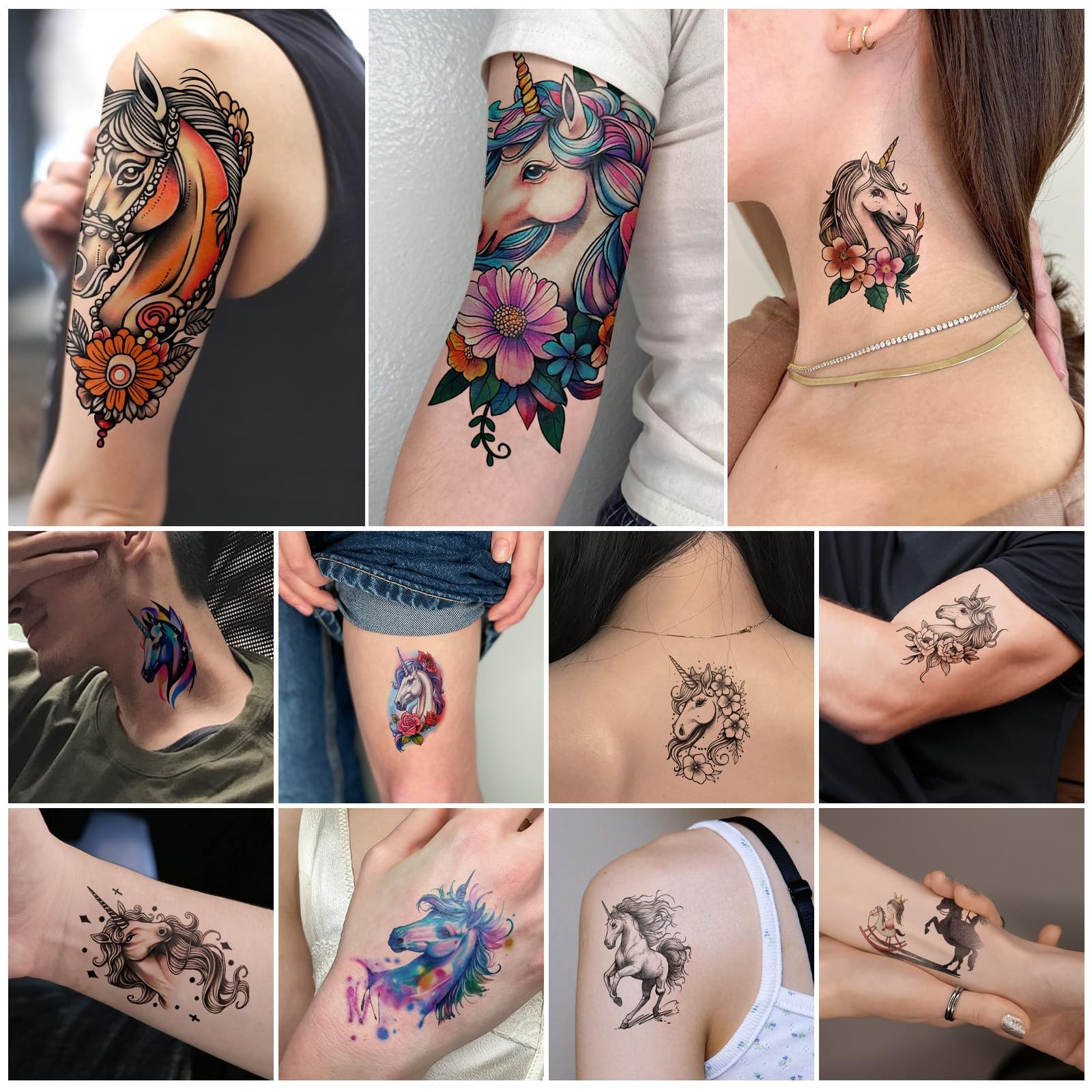 77 Sheets Unicorn Temporary Tattoo for Large, Small, Flowers Animals Styles