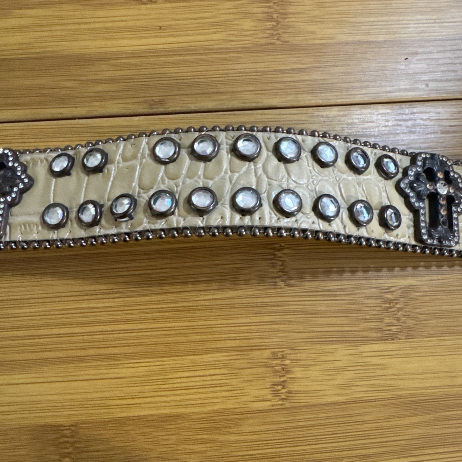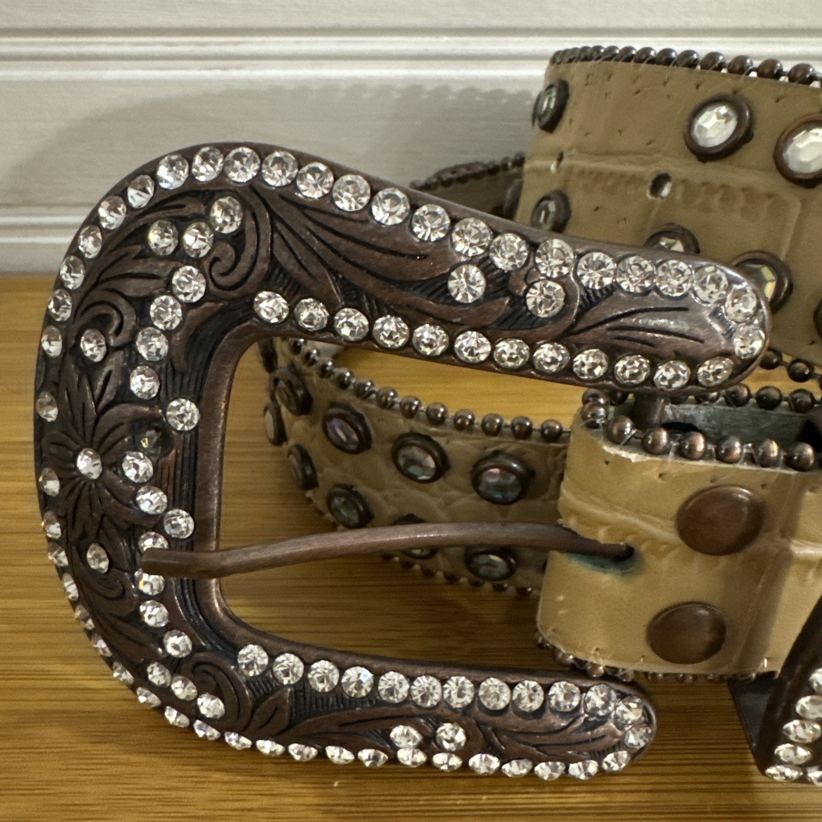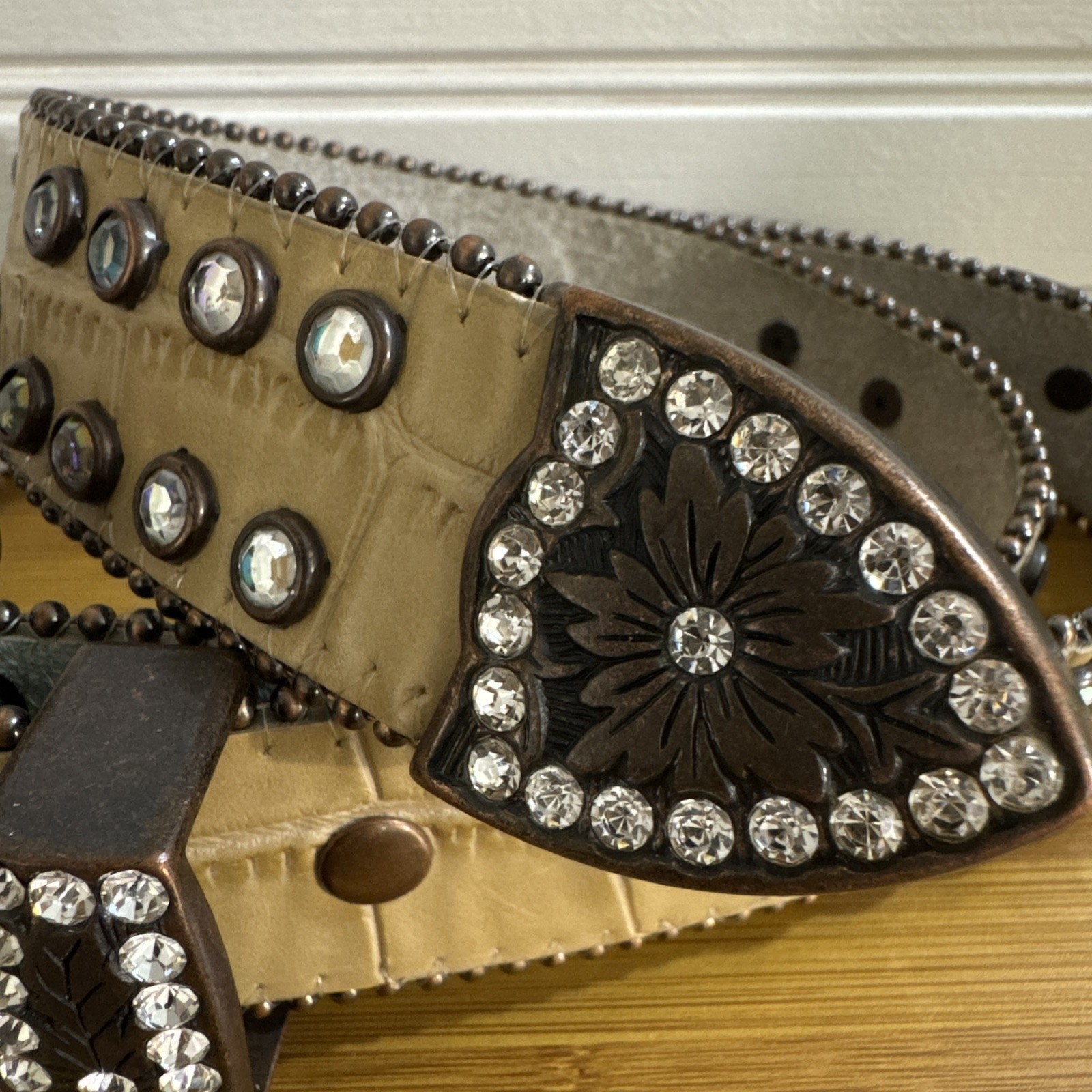 Western Square Concho Bling Belt with Tan Croc Leather Medium 34 1.5 Wide