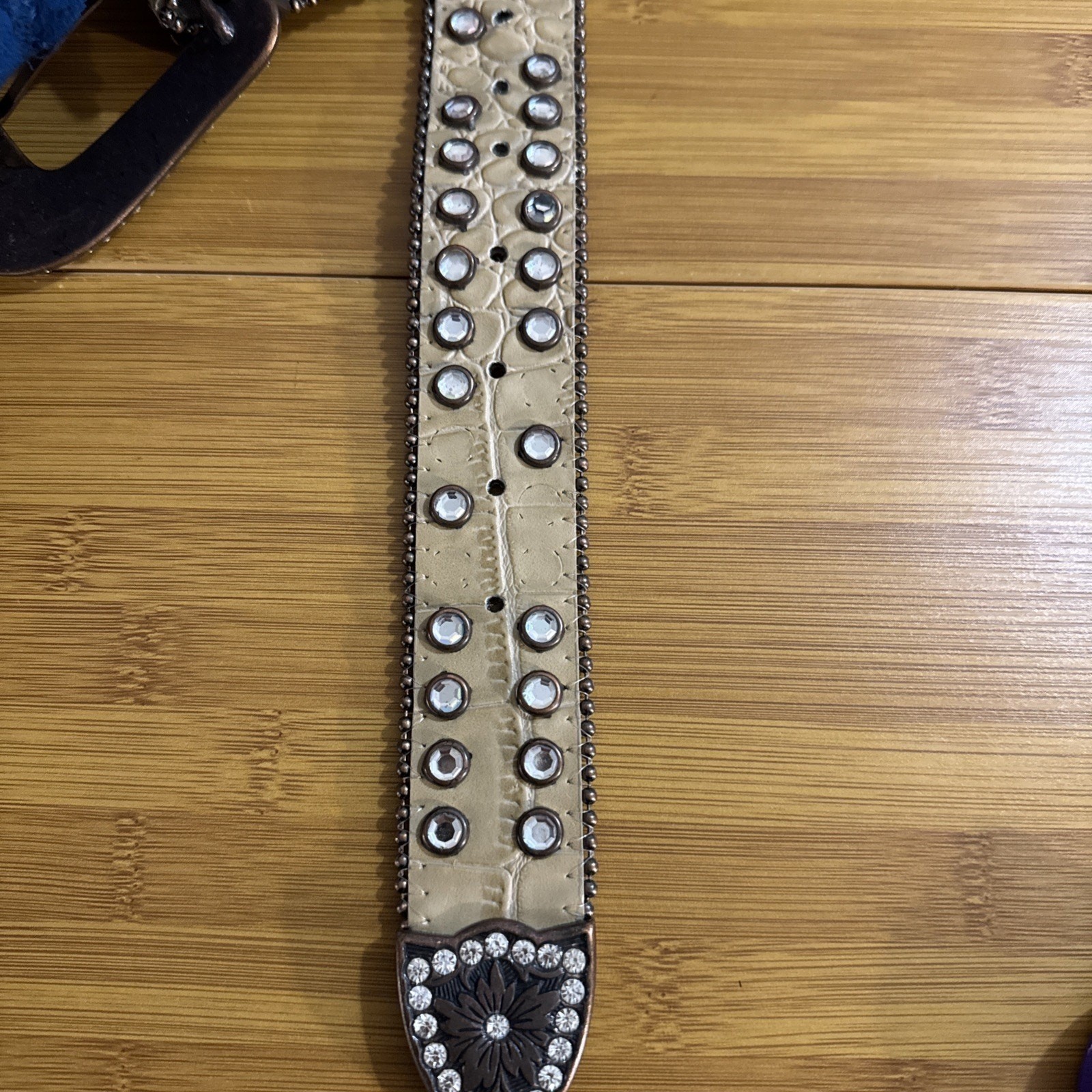 как выглядит Western Square Concho Bling Belt with Tan Croc Leather Medium 34 1.5 Wide фото