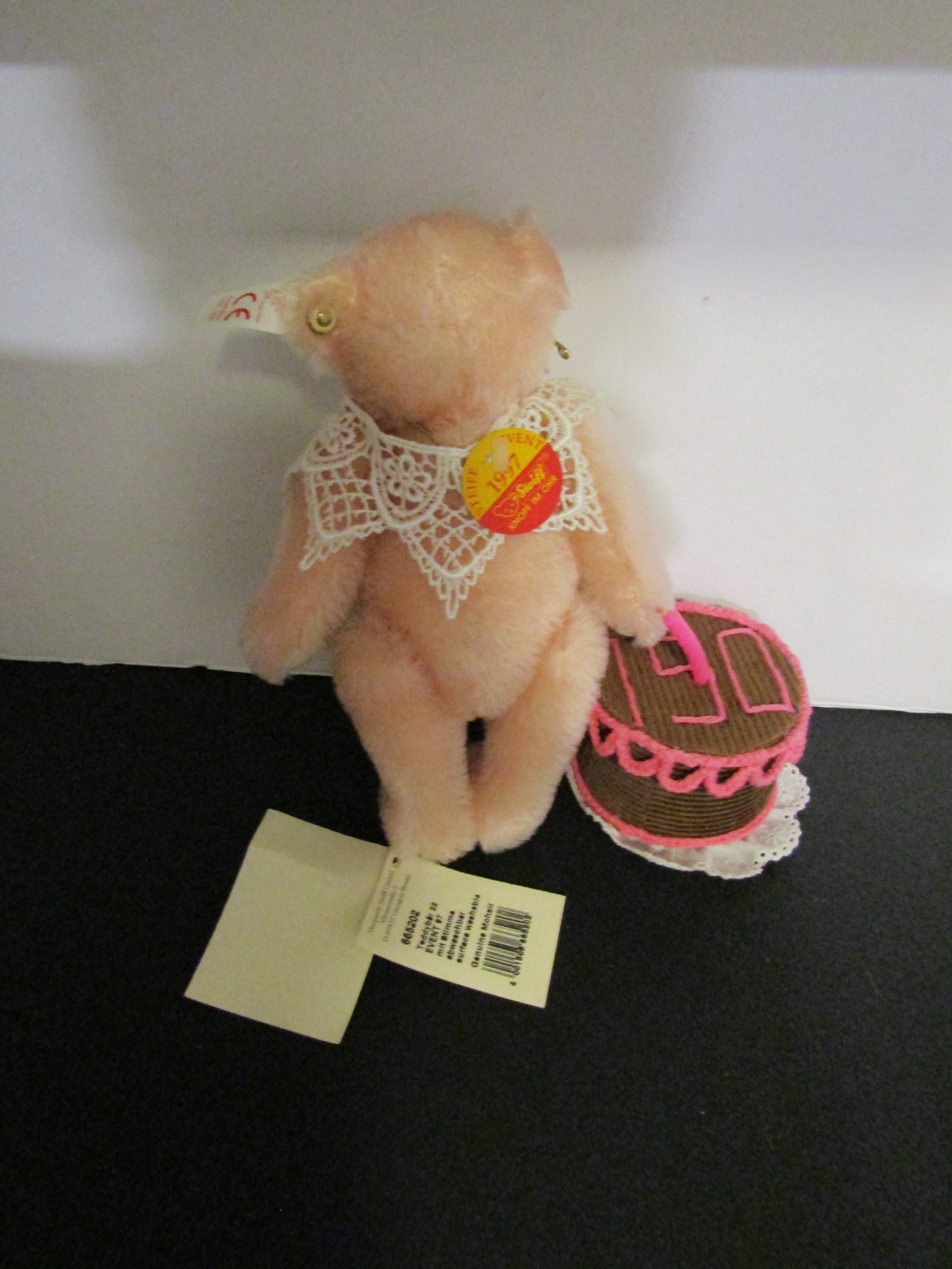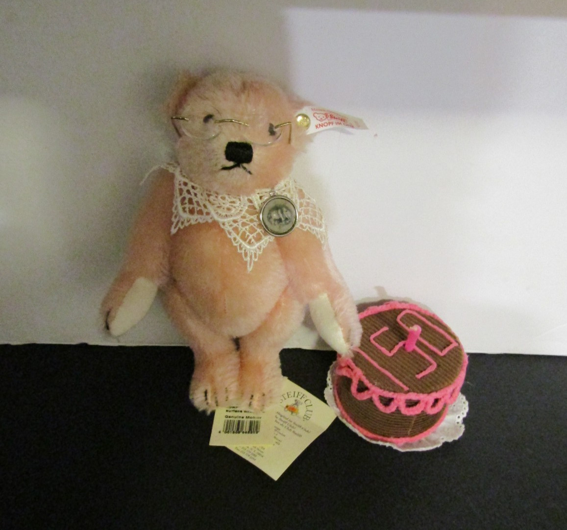 как выглядит 1997 STEIFF Margarete 8" Pink Teddy Bear 150 Birthday Tags Org Box 665202 RARE фото