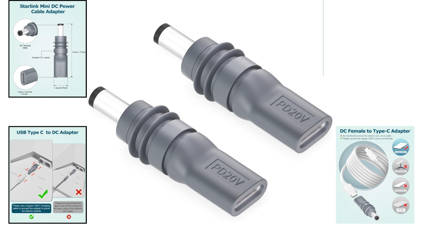 Effortless 2PCS USB C to DC Adapter for Starlink Mini - 20V Power Solution