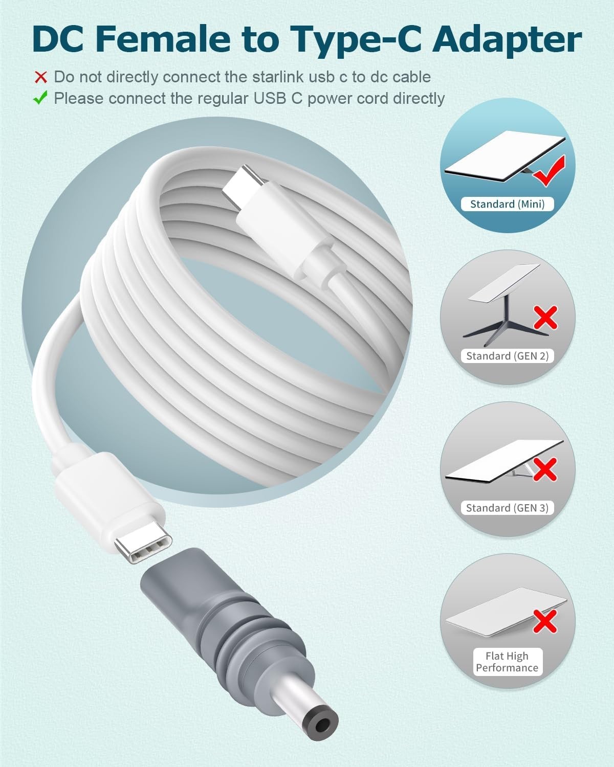 как выглядит Effortless 2PCS USB C to DC Adapter for Starlink Mini - 20V Power Solution фото