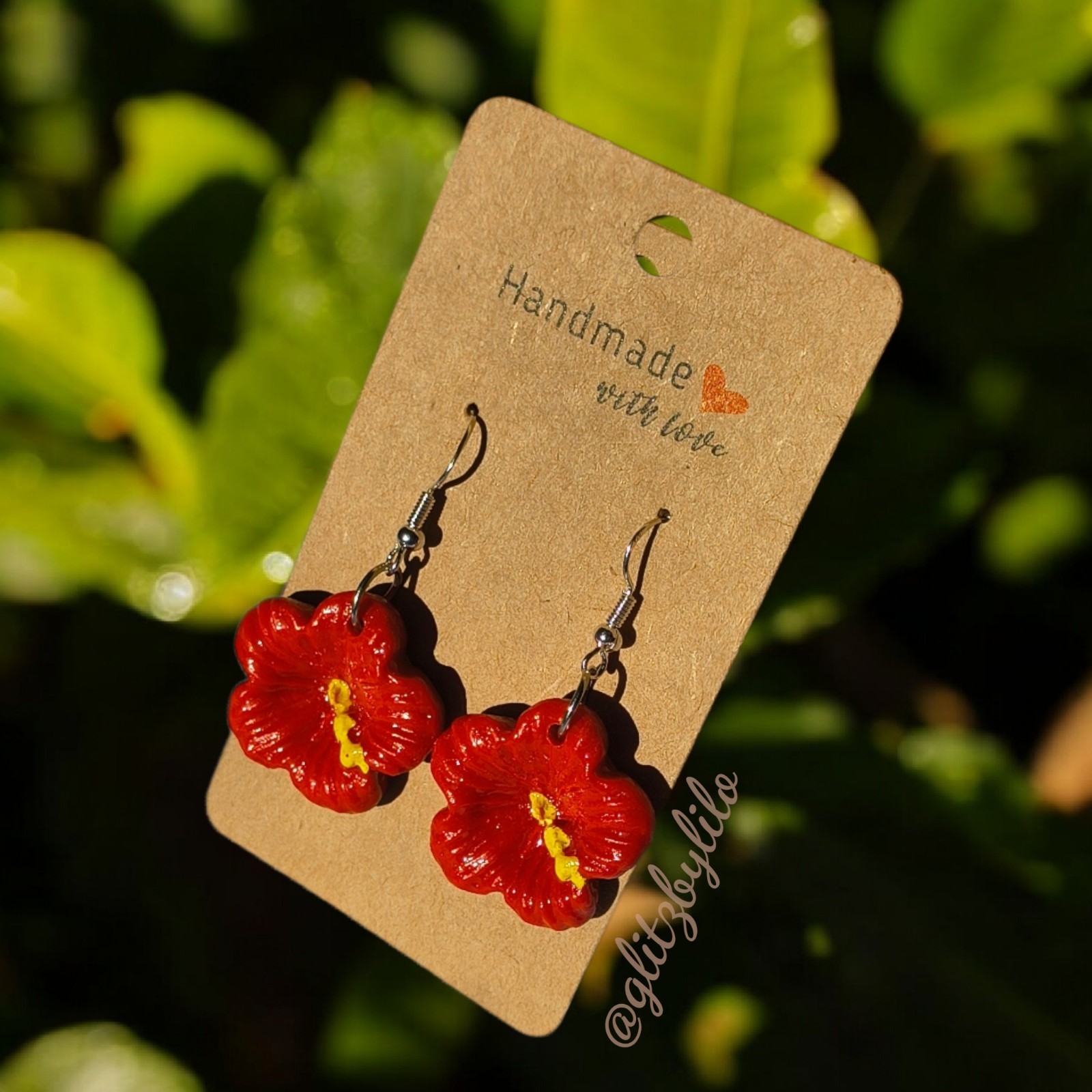 Flor de Maga Puerto Rico Flower Red Hibiscus Dangle Earrings Woman Jewelry