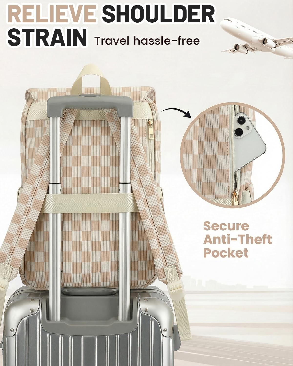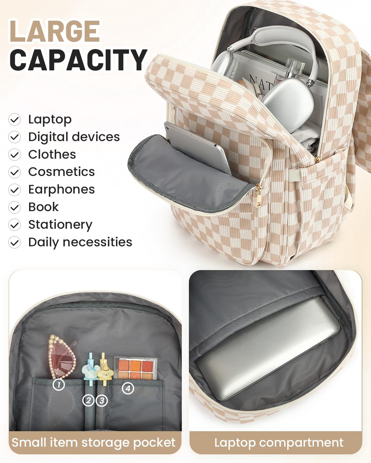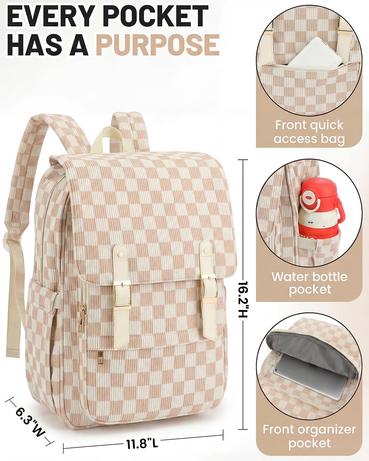 Corduroy Laptop Backpack for Women, Fits 15.6 Inch Computer Bag, College High...