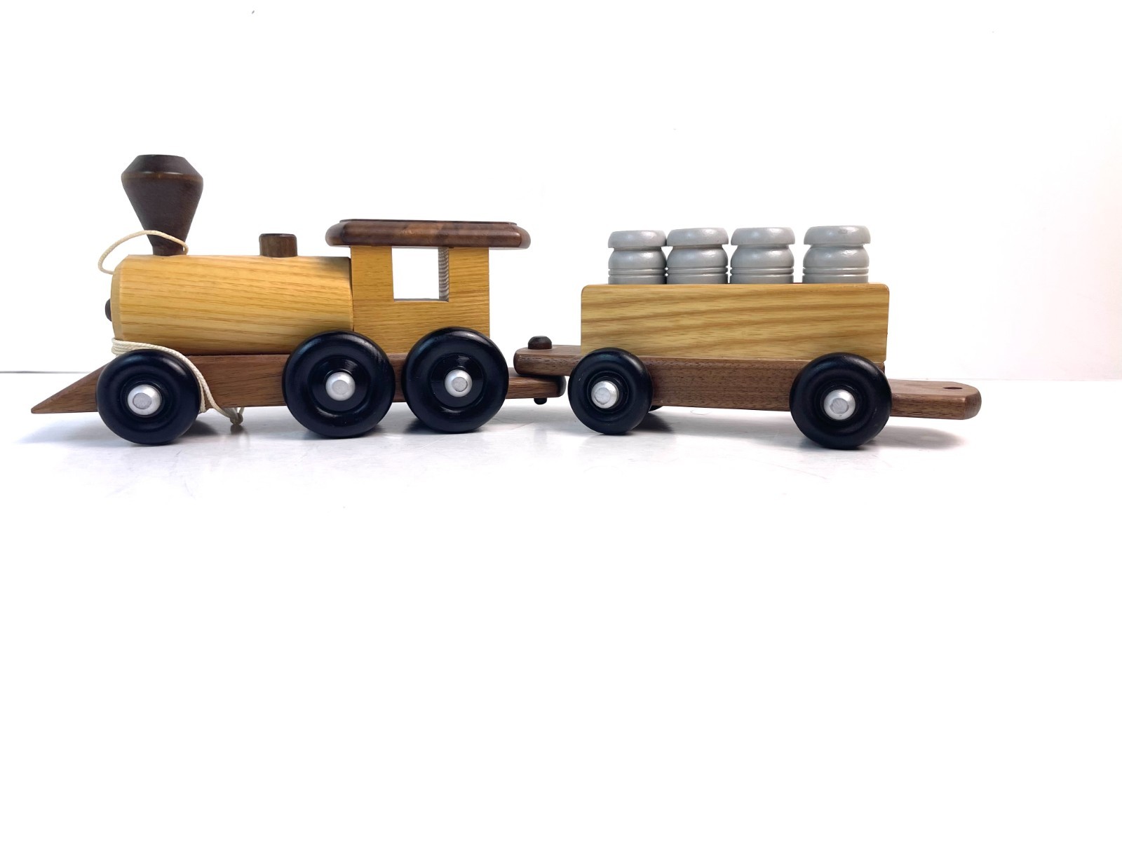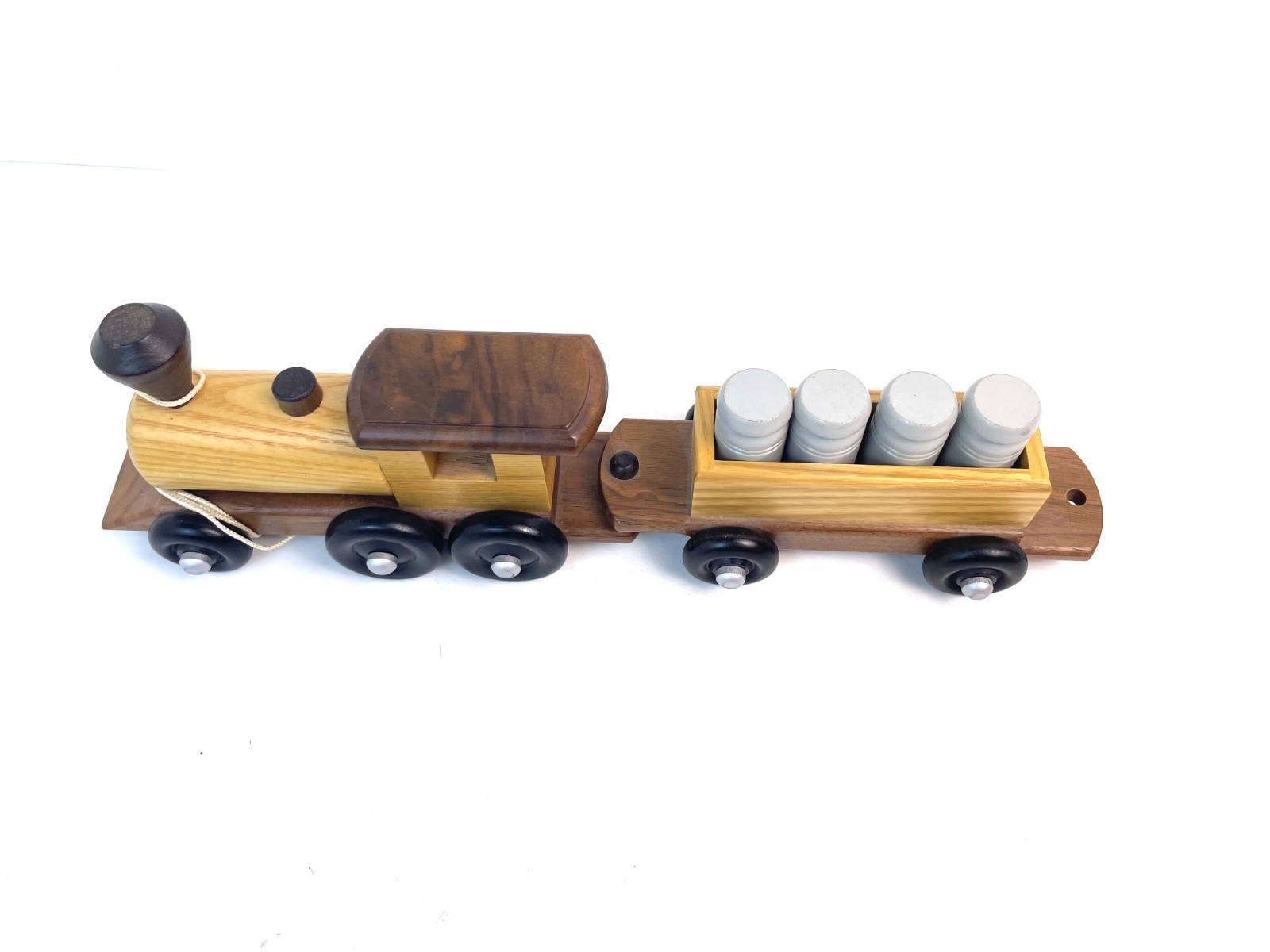 Vintage Wooden Toy Train Set 6 Piece Locomotive and Cars Handcrafted 34 Long