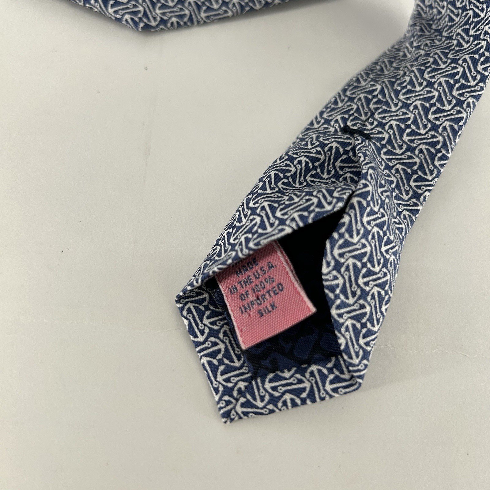 Vineyard Vines Neck Tie Boys Navy Blue Anchor Geo Print Silk