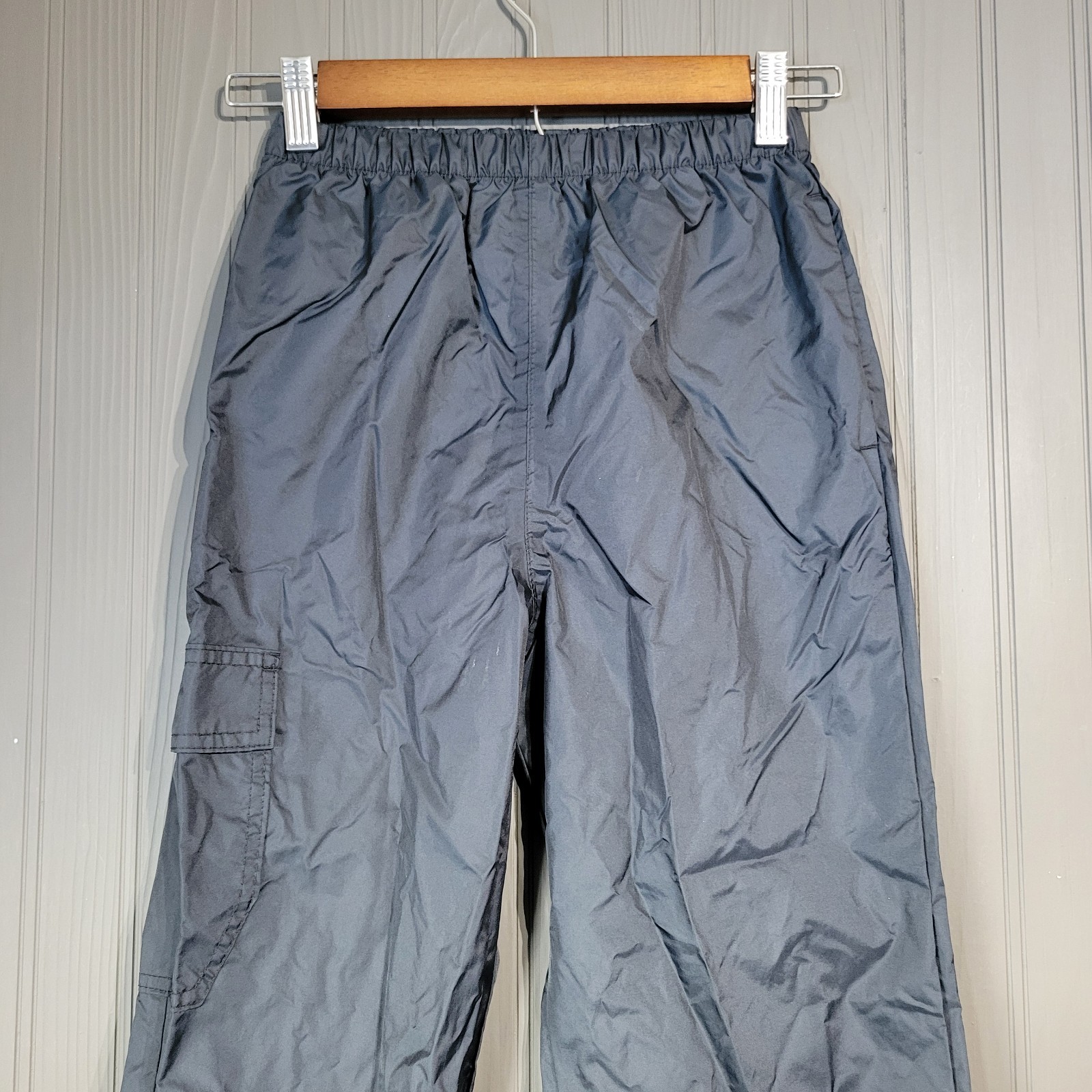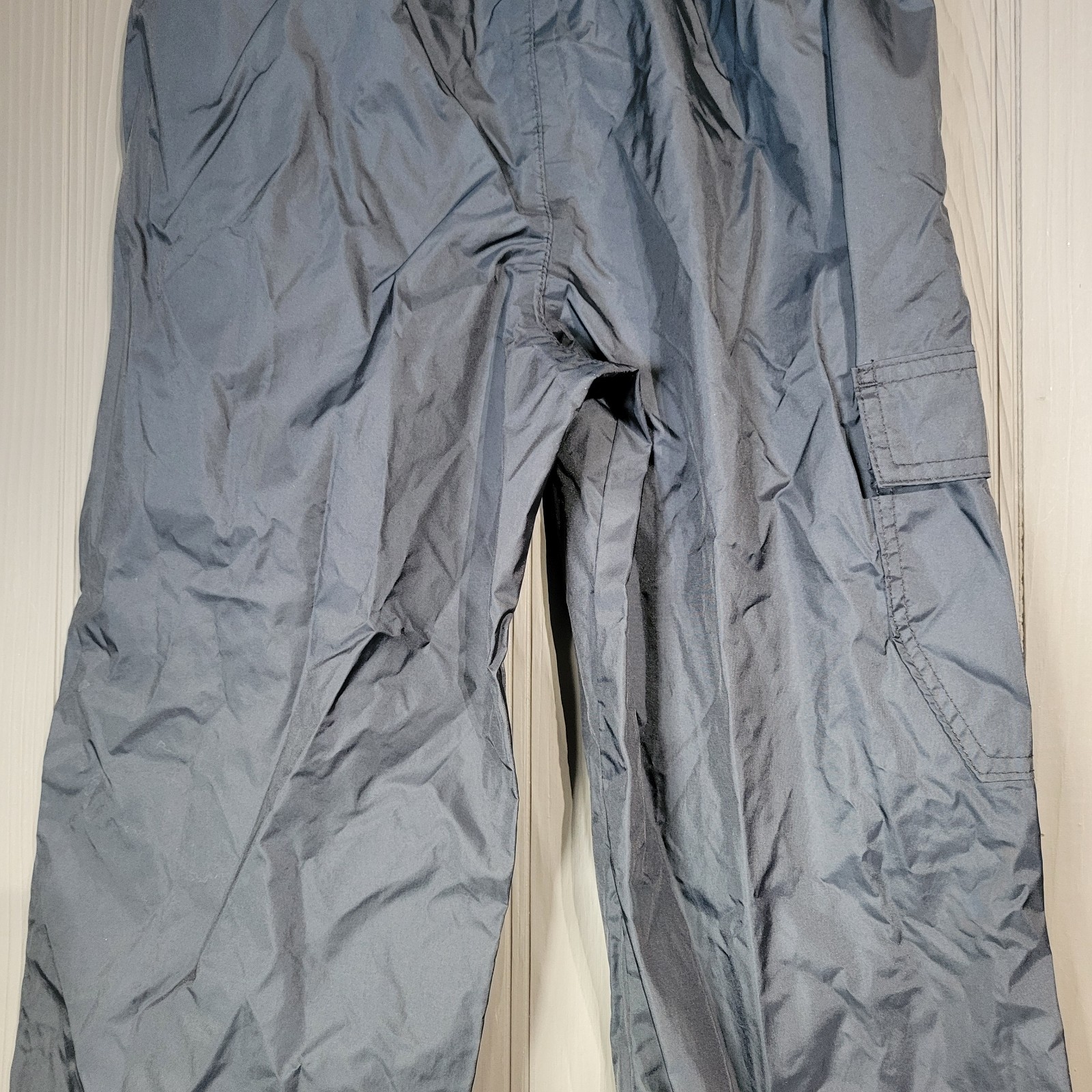 как выглядит Columbia Rain Pants Elastic Waist Cargo Pocket Weatherproof Black Youth Medium фото