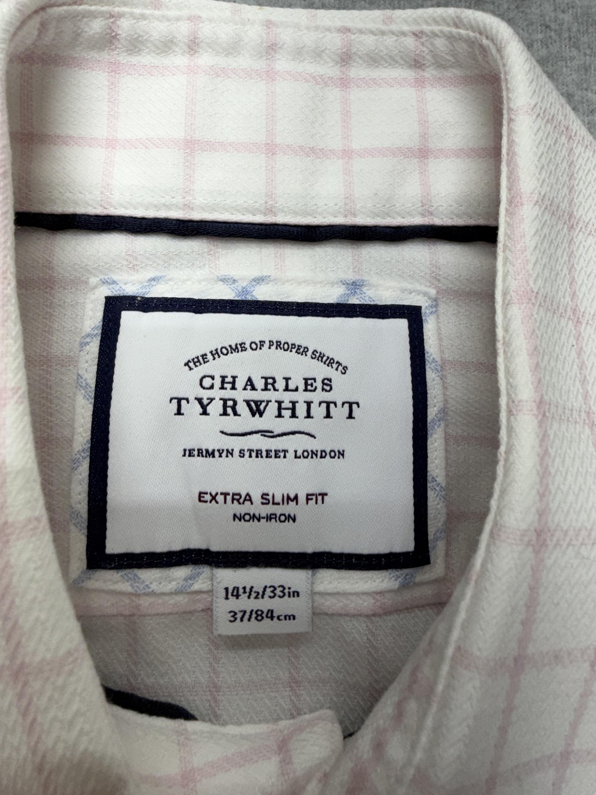 как выглядит Charles Tyrwhitt Shirt Mens 14.5 32/33 White Pink Check Extra Slim Non Iron фото