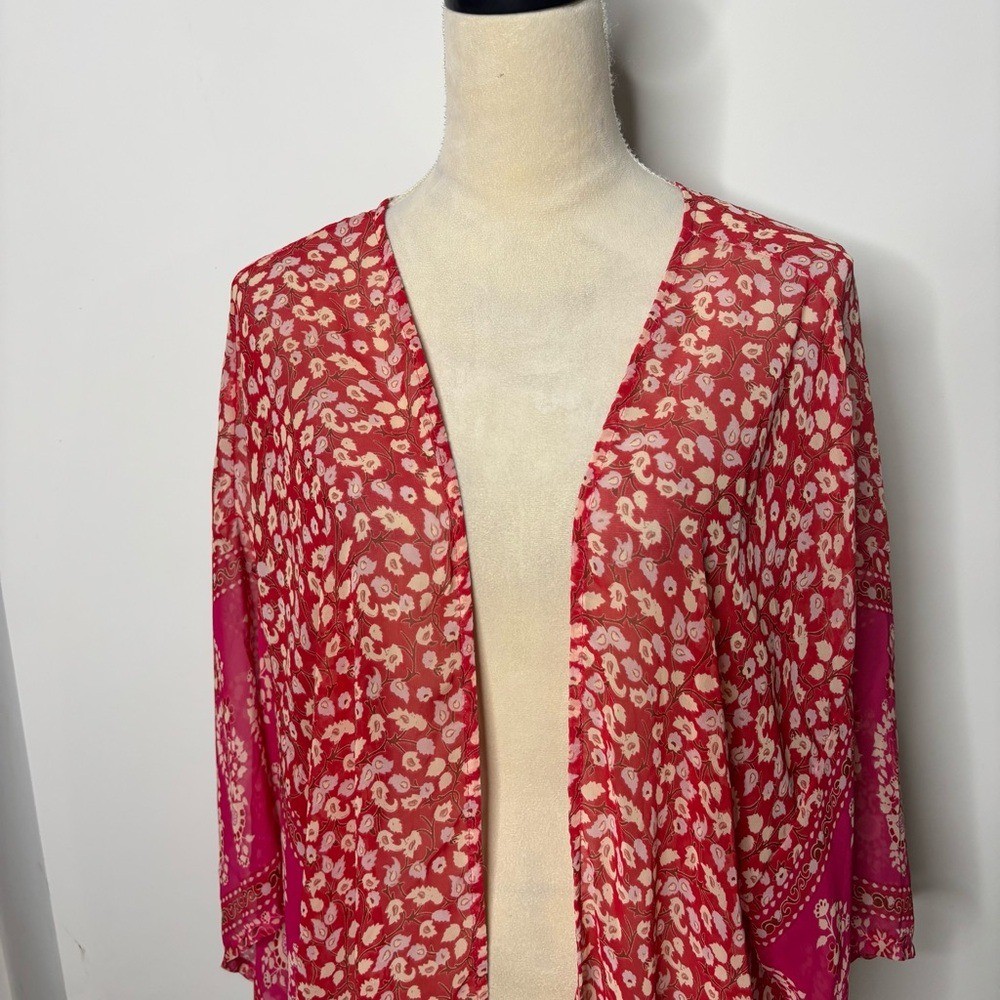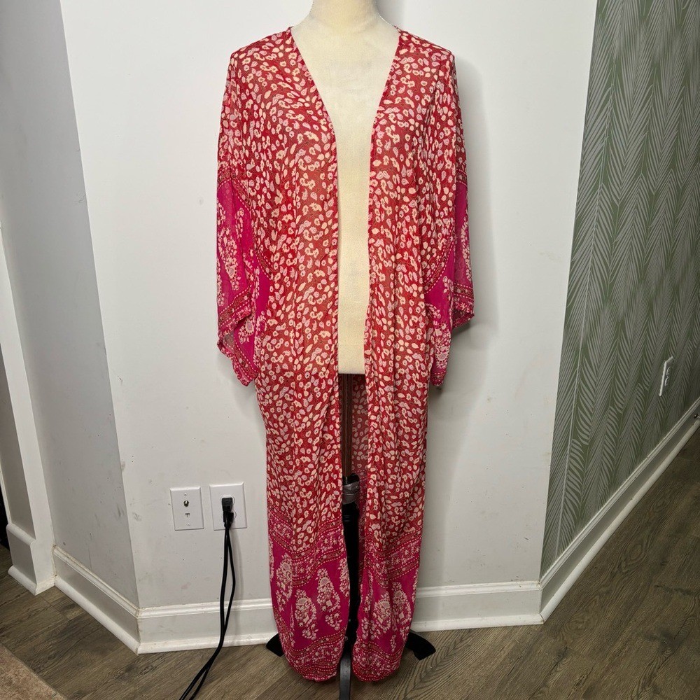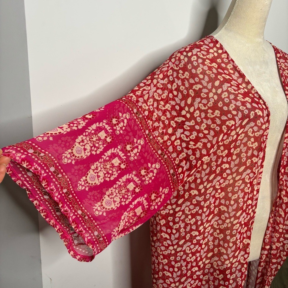 Red Kimono Sheer Floral Robe One Size Bohemian Loungewear