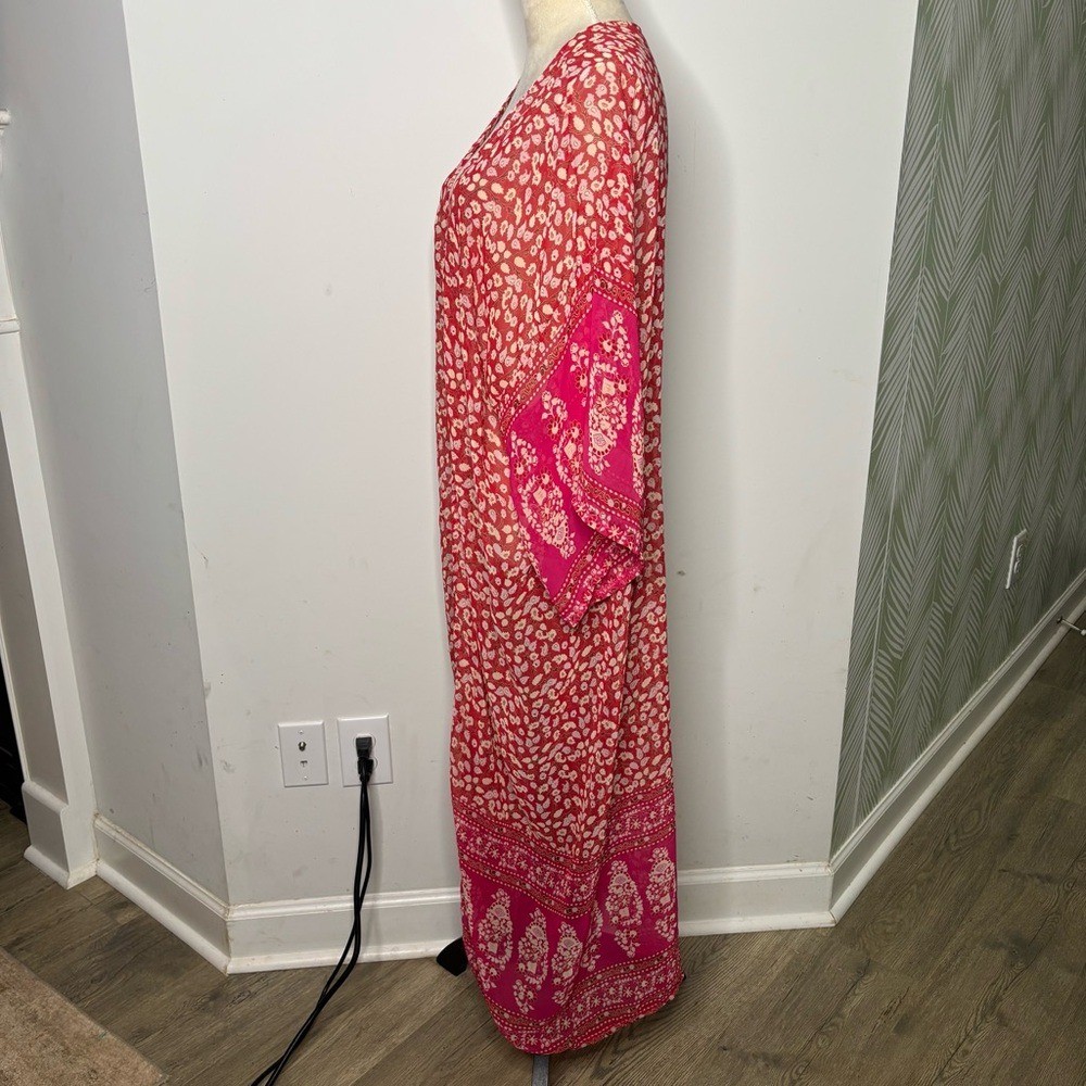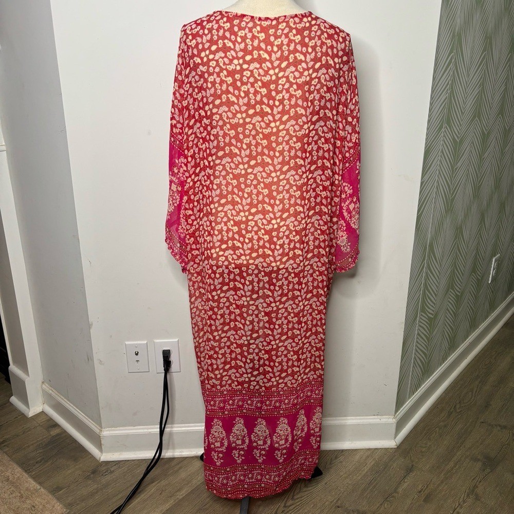 как выглядит Red Kimono Sheer Floral Robe One Size Bohemian Loungewear фото