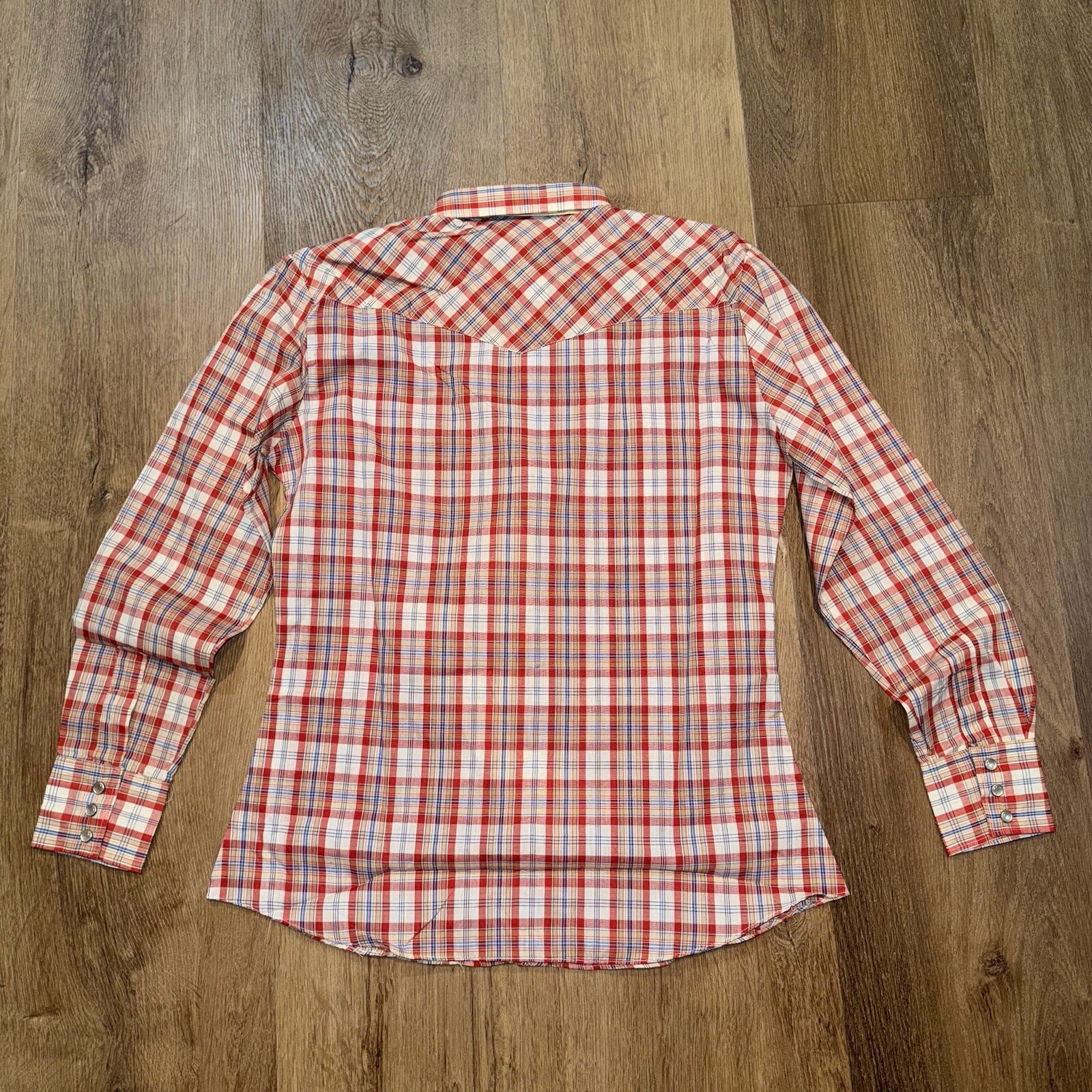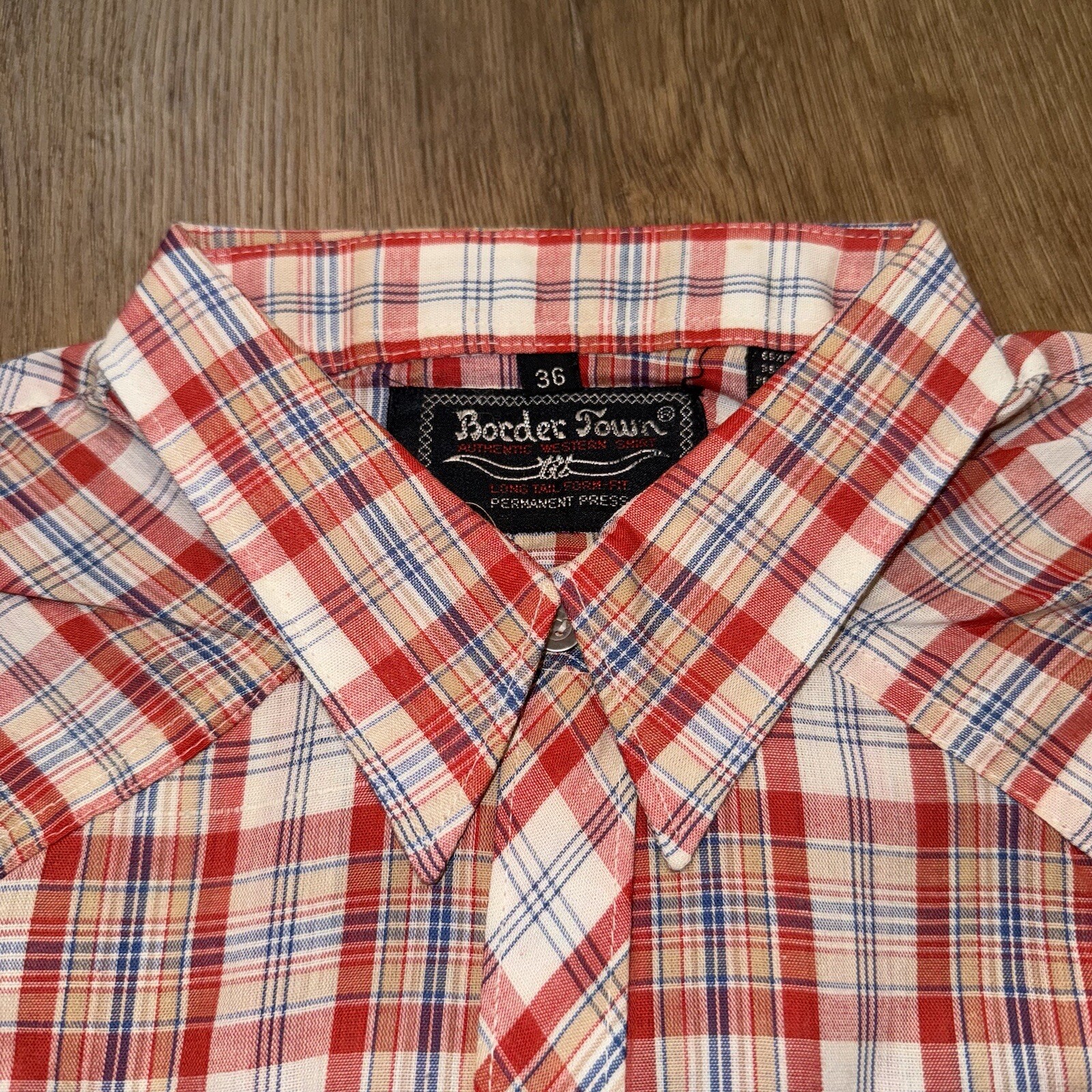 Vtg 70s Pearl Snap Shirt Border Town Western Plaid Rockabilly NEW NOS Women 36