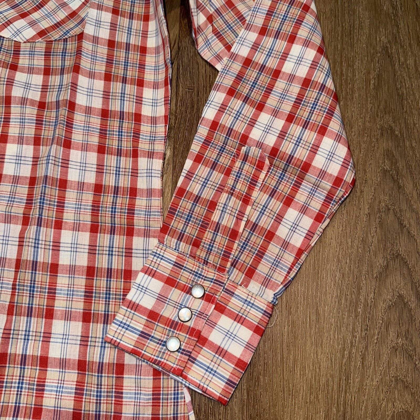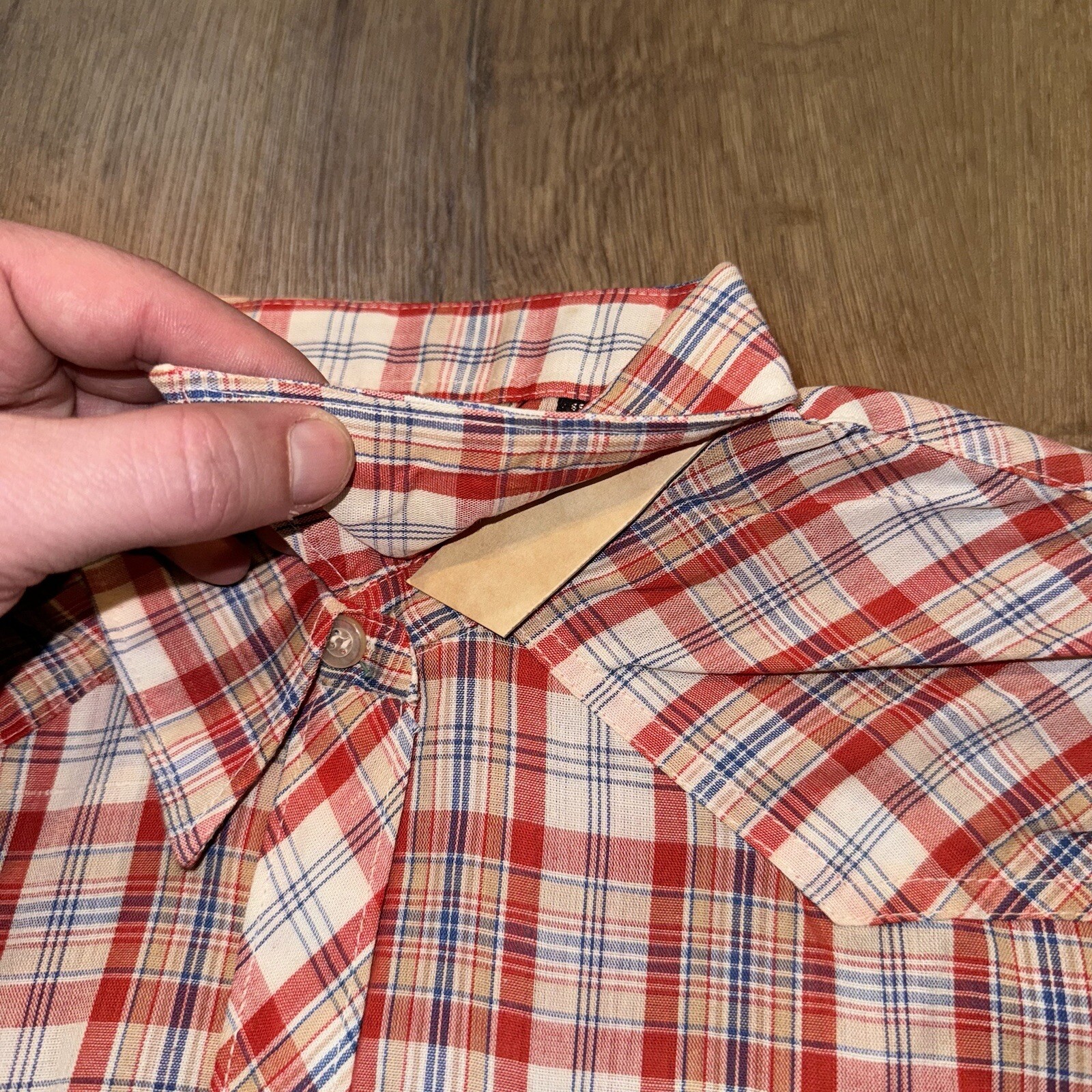 как выглядит Vtg 70s Pearl Snap Shirt Border Town Western Plaid Rockabilly NEW NOS Women 36 фото
