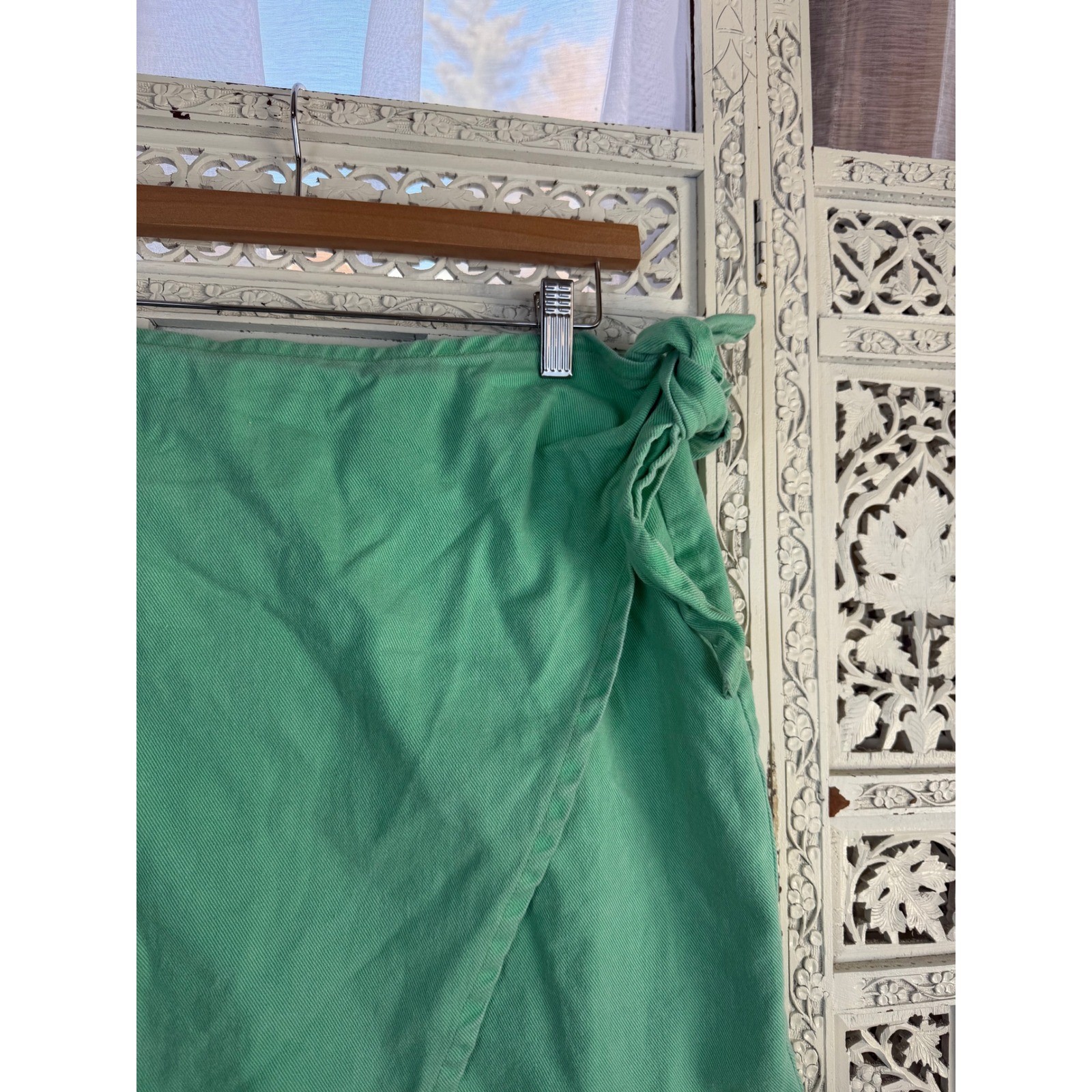 как выглядит Vtg Green Denim Wrap Skirt Sz M Retro 90s Beachy Casual Bright Twee фото