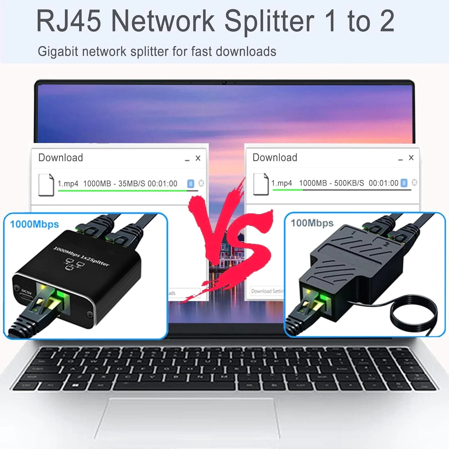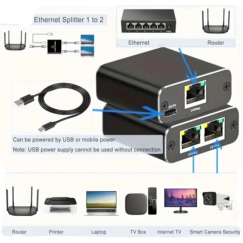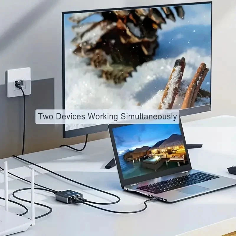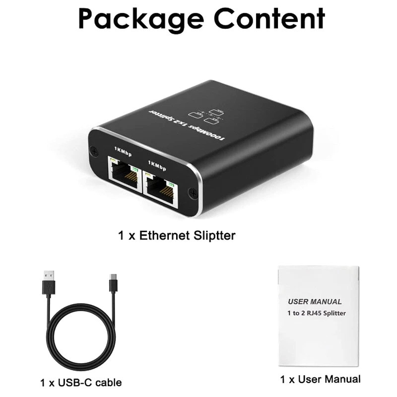 RJ45 Gigabit Ethernet Splitter 1000Mbps LAN Network Internet 1 to 2 Out Adapter