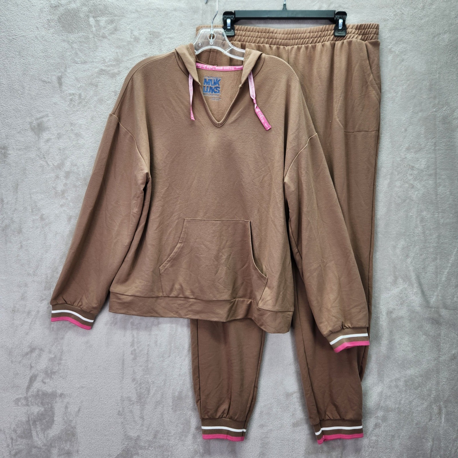 как выглядит Muk Luks Womens Large Coffee Brushed French Terry Hooded Lounge Set A677901 фото