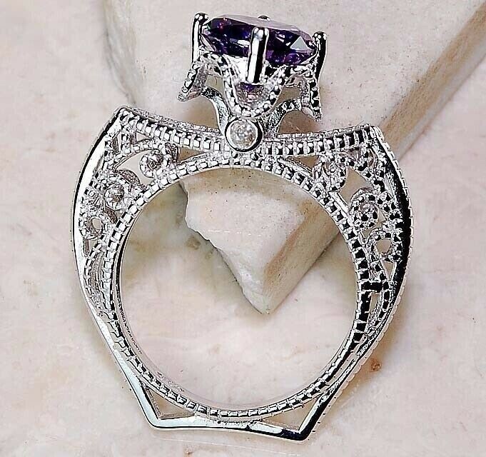 как выглядит 2CT Natural Amethyst Topaz 925 Solid Sterling Silver Ring Sz 7 NB3-4 фото