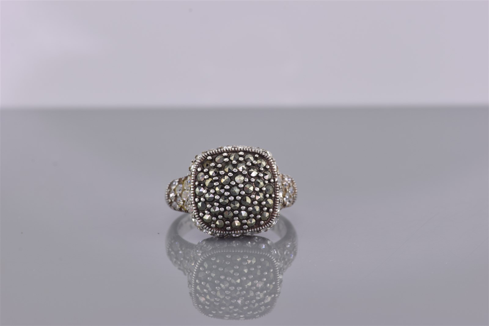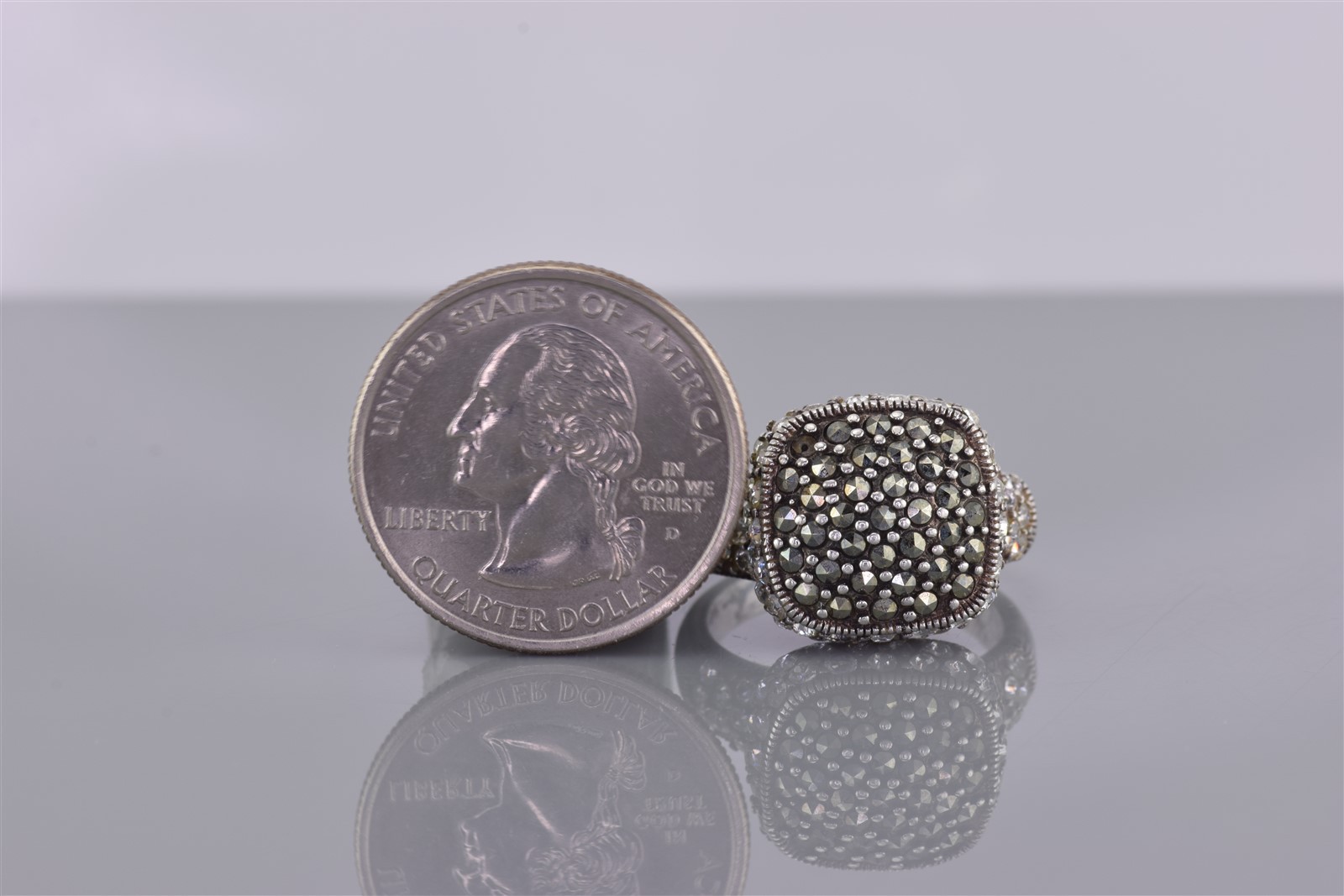 как выглядит Sterling Silver Squared 155 Marcasite Cubic Zirconia Dome Band Ring 925 Sz: 8 фото