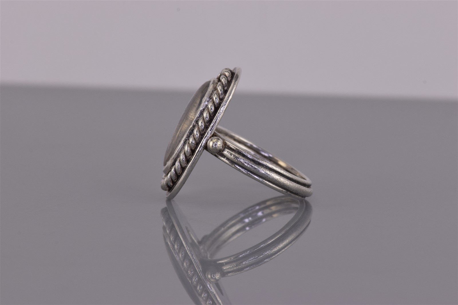 как выглядит Sterling Silver Rope Trim Oval Pinkish White Mother of Pearl Band Ring 925 Sz: 7 фото