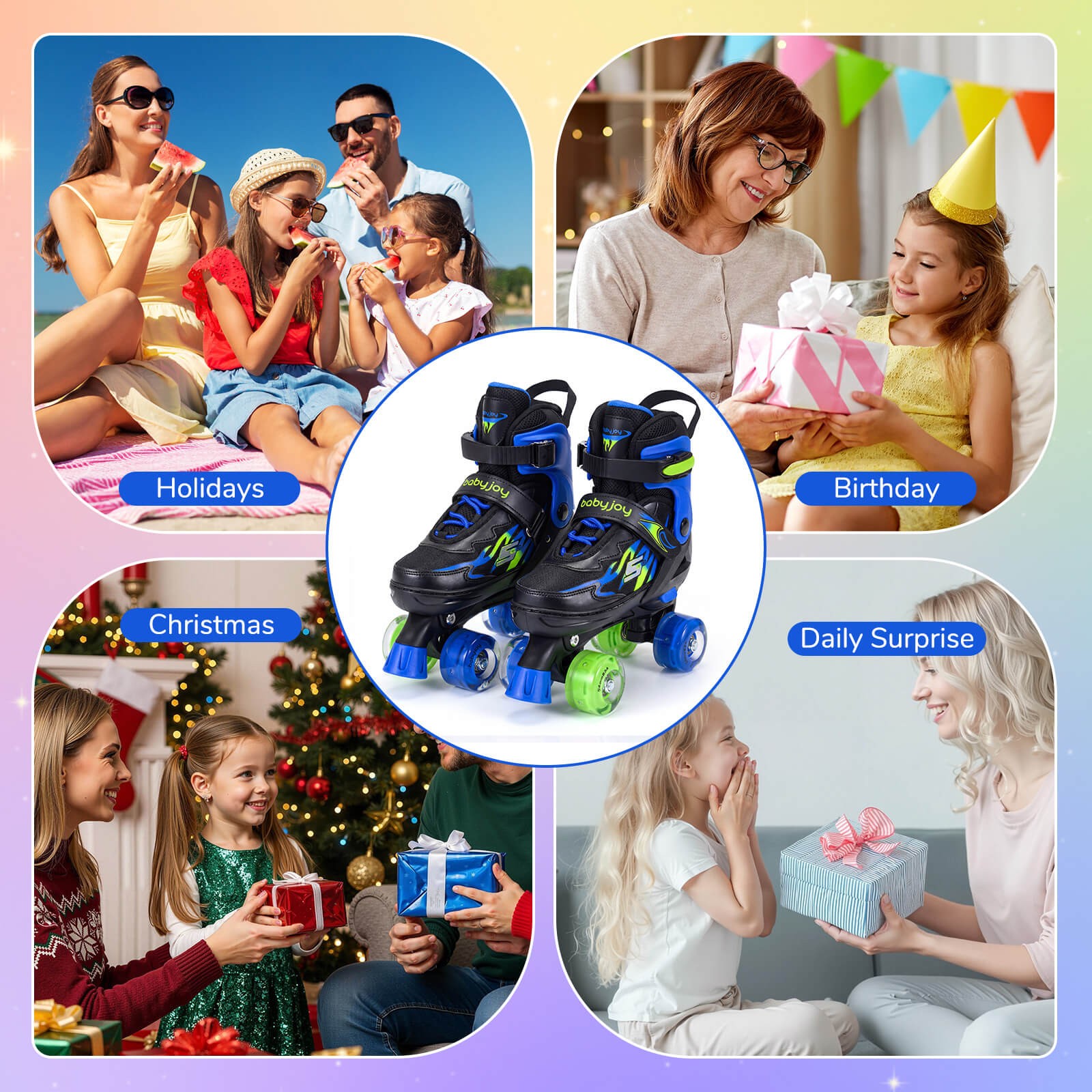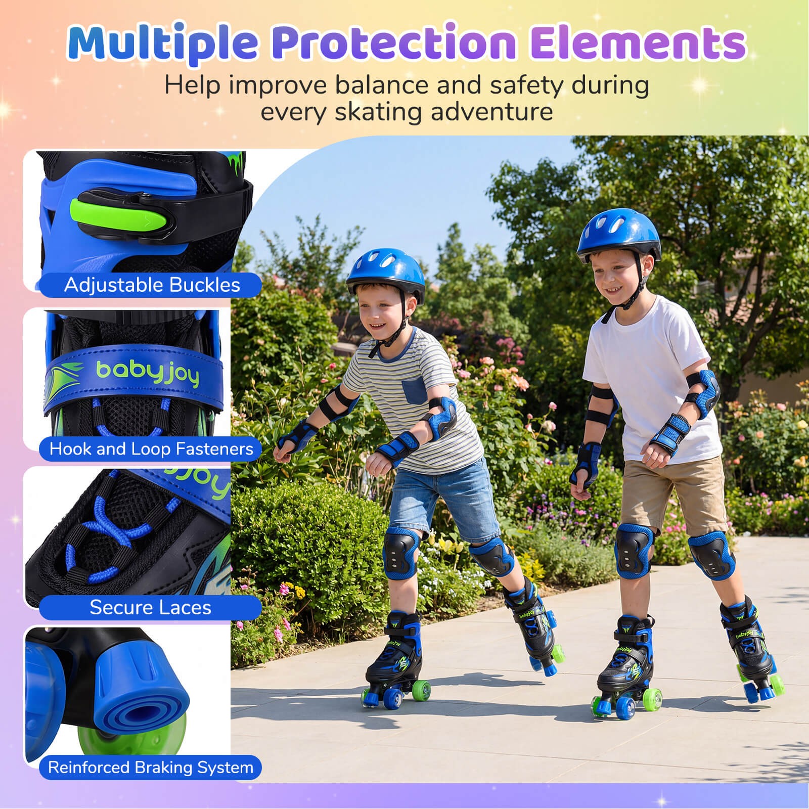 как выглядит Kids Roller Skates for Girls Boys, 4 Sizes Adjustable Quad Skates for Children фото