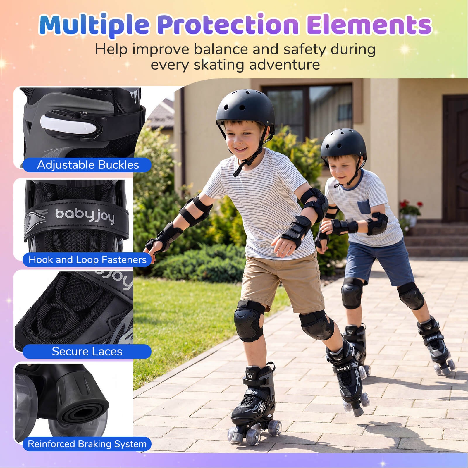 как выглядит Kids Roller Skates for Girls Boys, 4 Sizes Adjustable Quad Skates for Children фото